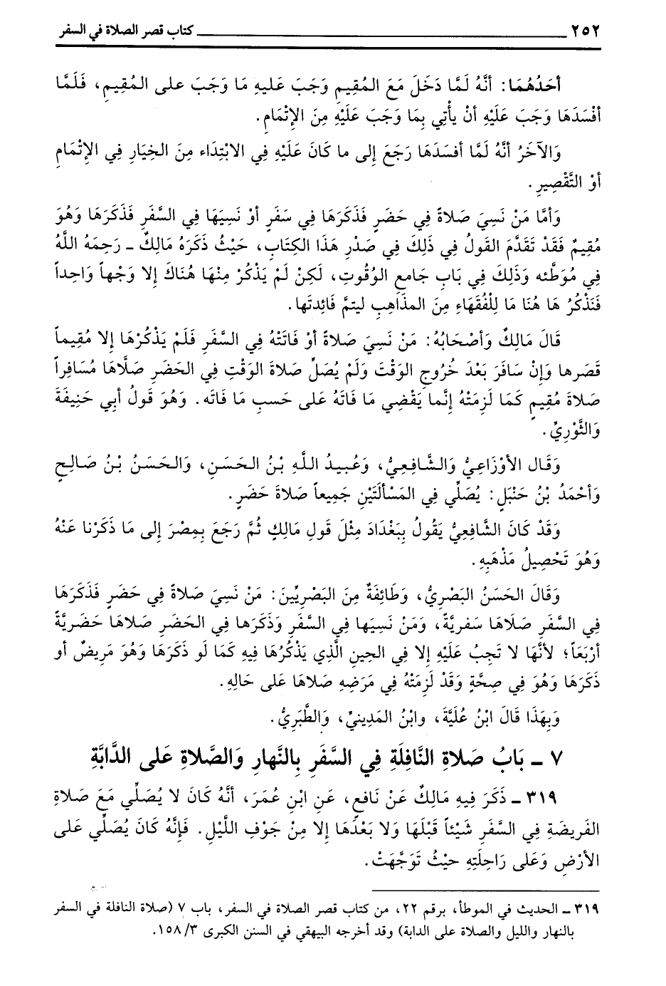 319 - ذَكَرَ فِيهِ مَالِكٌ عن نافع عن بن عُمَرَ أَنَّهُ كَانَ لَا يُصَلِّي مَعَ صَلَاةِ الْفَرِيضَةِ فِي السَّفَرِ شَيْئًا قَبْلَهَا وَلَا بَعْدَهَا إِلَّا مِنْ جَوْفِ اللَّيْلِ فَإِنَّهُ كَانَ يُصَلِّي عَلَى الْأَرْضِ وَعَلَى رَاحِلَتِهِ حَيْثُ تَوَجَّهَتْ