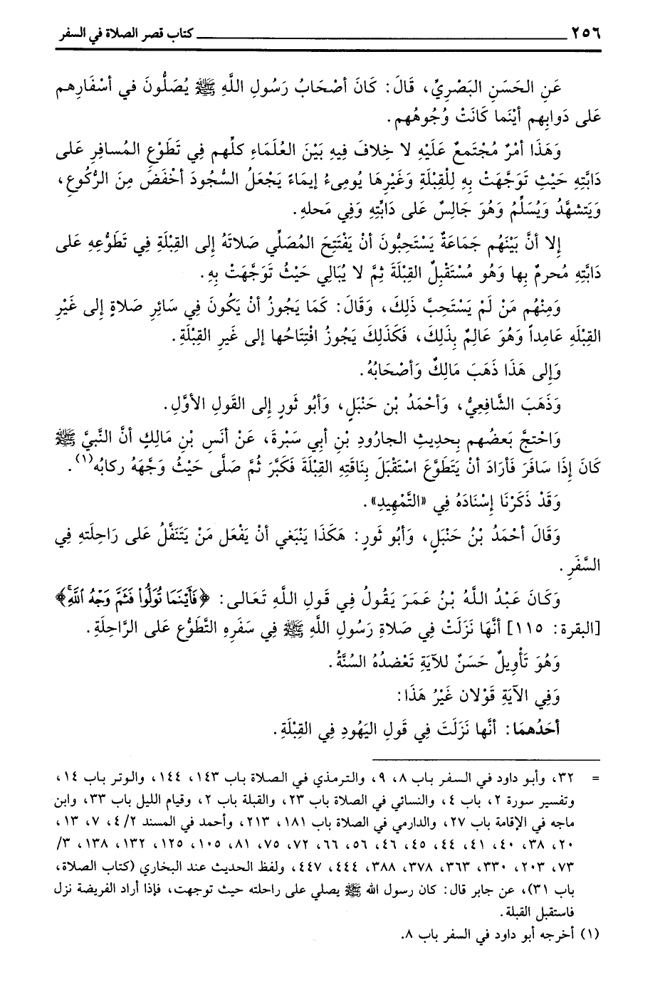 عَنِ الْحَسَنِ الْبَصَرِيِّ قَالَ كَانَ أَصْحَابُ رَسُولِ اللَّهِ صَلَّى اللَّهُ عَلَيْهِ وَسَلَّمَ يُصَلُّونَ فِي أَسْفَارِهِمْ عَلَى دَوَابِّهِمْ أَيْنَمَا كَانَتْ وُجُوهُهُمْ