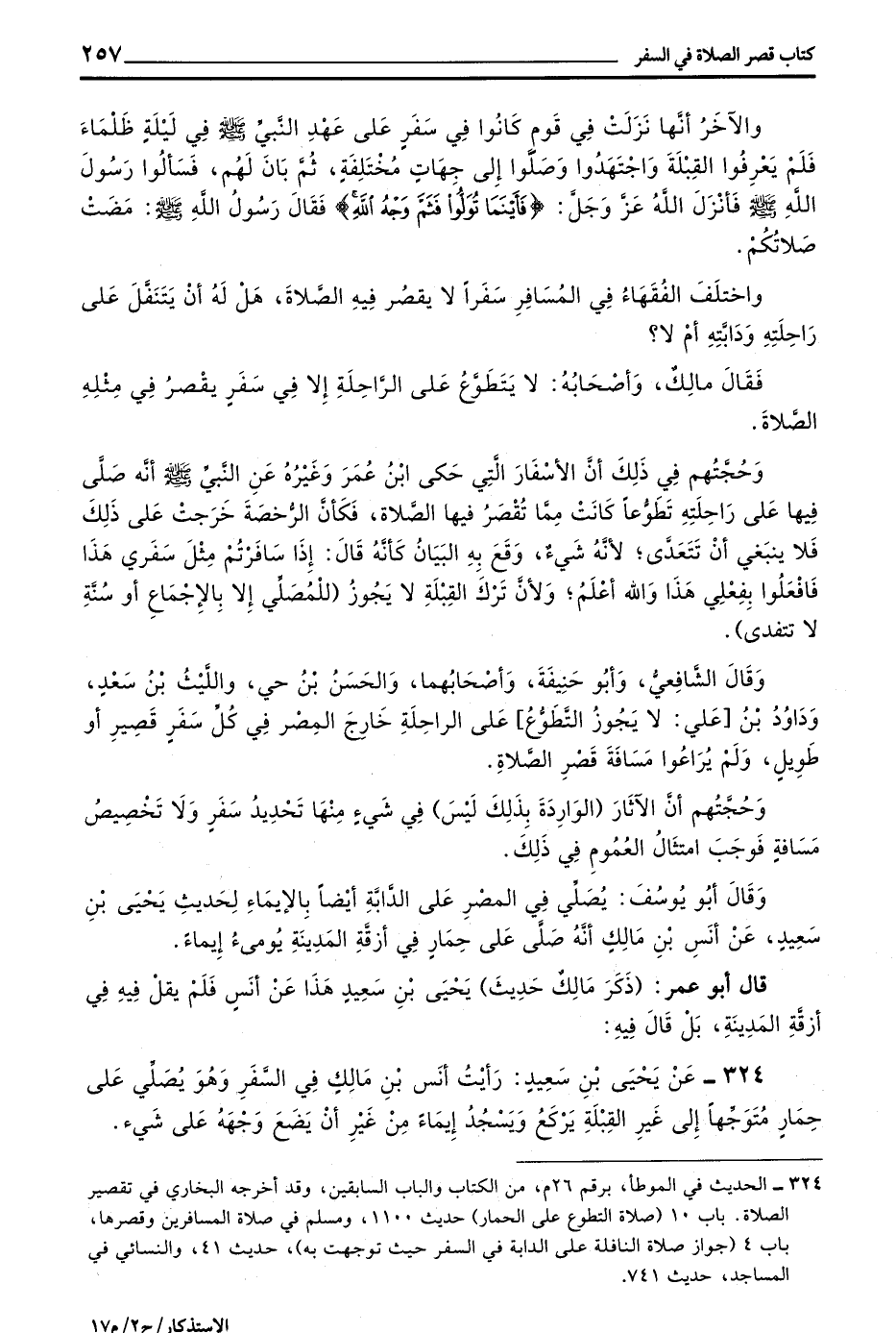 قَالَ أَبُو عُمَرَ (ذَكَرَ مَالِكٌ حَدِيثَ) يَحْيَى بْنِ سَعِيدٍ هَذَا عَنْ أَنَسٍ فَلَمْ يَقُلْ فِيهِ فِي أَزِقَّةِ الْمَدِينَةِ بَلْ قَالَ فِيهِ 324 عَنْ يَحْيَى بْنِ سَعِيدٍ رَأَيْتُ أَنَسَ بْنَ مَالِكٍ فِي السَّفَرِ وَهُوَ يُصَلِّي عَلَى حِمَارٍ مُتَوَجِّهًا إِلَى غَيْرِ الْقِبْلَةِ يَرْكَعُ وَيَسْجُدُ إِيمَاءً مِنْ غَيْرِ أَنْ يَضَعَ وَجْهَهُ على شيء