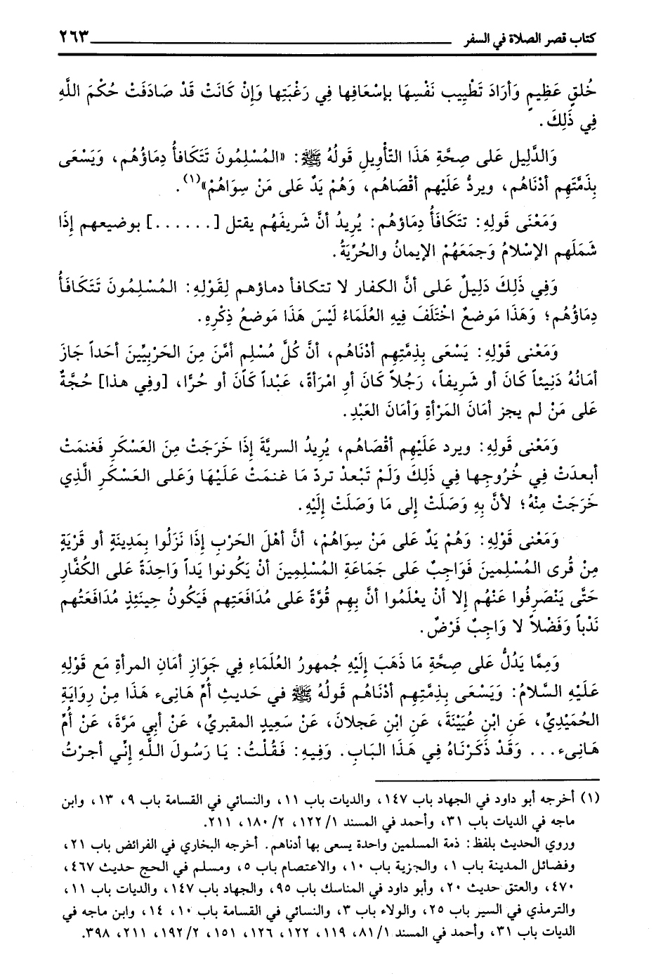 وَالدَّلِيلُ عَلَى صِحَّةِ هَذَا التَّأْوِيلِ قَوْلُهُ صَلَّى اللَّهُ عَلَيْهِ وَسَلَّمَ الْمُسْلِمُونَ تَتَكَافَأُ دِمَاؤُهُمْ وَيَسْعَى بِذِمَّتِهِمْ أَدْنَاهُمْ وَيَرُدُّ عَلَيْهِمْ أَقْصَاهُمْ وَهُمْ يَدٌ عَلَى مَنْ سِوَاهُمْ