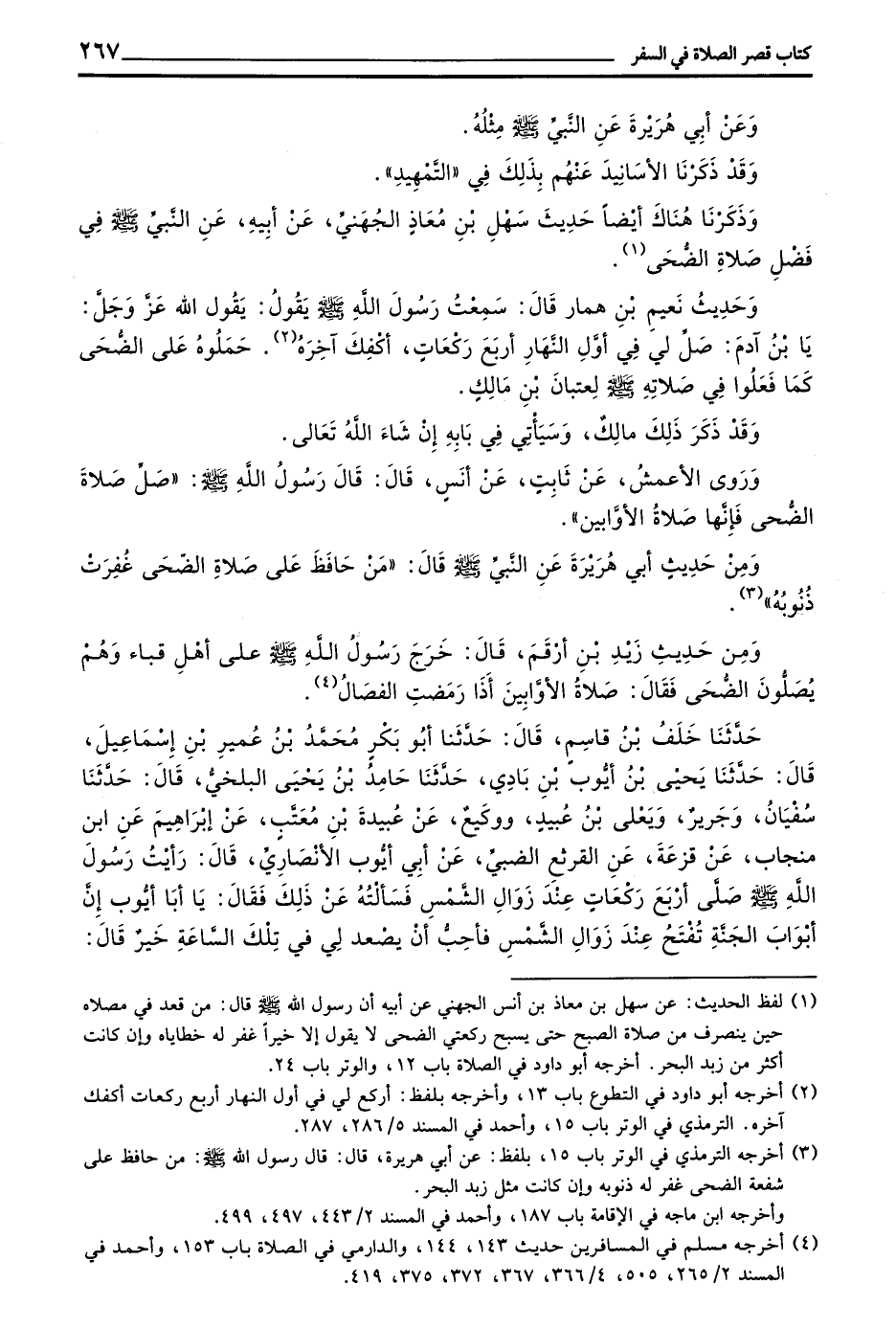 وَحَدِيثُ نُعَيْمِ بْنِ هَمَّارٍ قَالَ سَمِعْتُ رَسُولَ اللَّهِ صَلَّى اللَّهُ عَلَيْهِ وَسَلَّمَ يقول يقول الله عز وجل يا بن آدَمَ صَلِّ لِي فِي أَوَّلِ النَّهَارِ أَرْبَعَ رَكَعَاتٍ أَكْفِكَ آخِرَهُ حَمَلُوهُ عَلَى الضُّحَى كَمَا فعلوا في صلاته صَلَّى اللَّهُ عَلَيْهِ وَسَلَّمَ لَعَتْبَانَ بْنِ مَالِكٍ