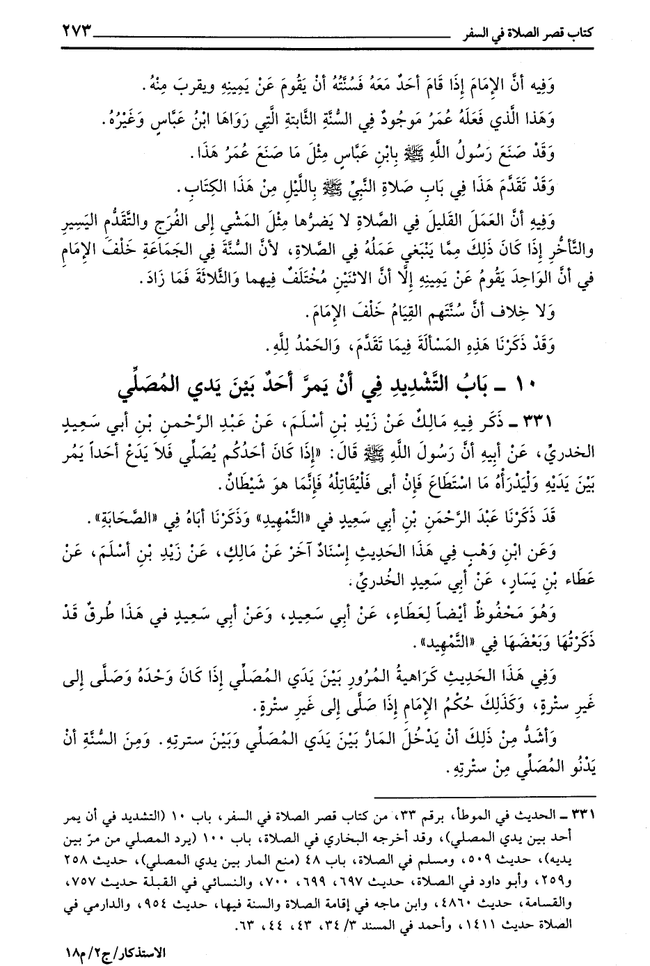 (10 بَابُ التَّشْدِيدِ فِي أَنْ يَمُرَّ أَحَدٌ بَيْنَ يَدَيِ الْمُصَلِّي)