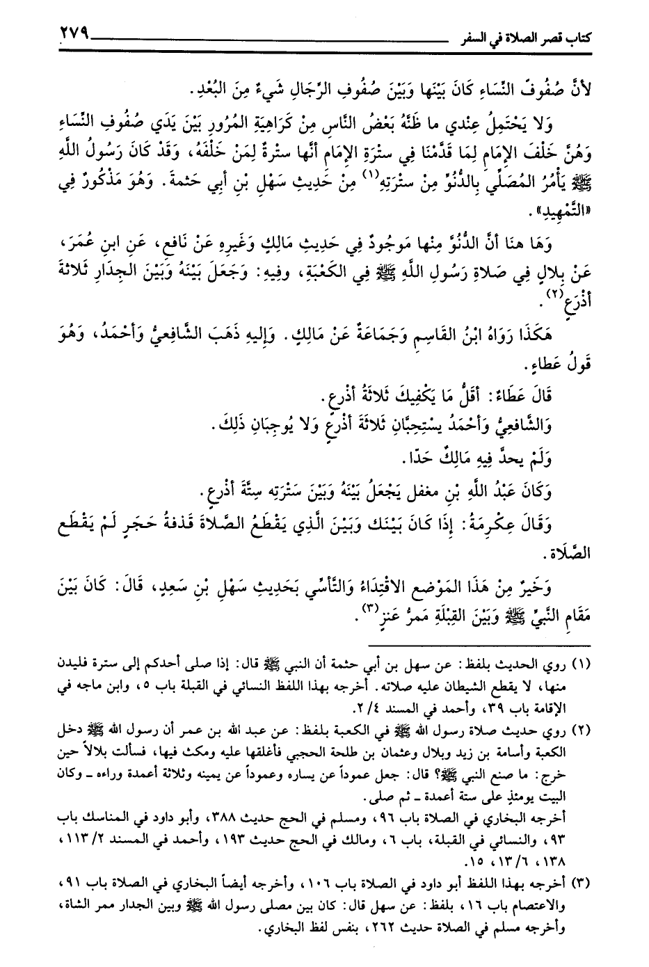 وَلَا يَحْتَمِلُ عِنْدِي مَا ظَنَّهُ بَعْضُ النَّاسِ مِنْ كَرَاهِيَةِ الْمُرُورِ بَيْنَ يَدَيْ صُفُوفِ النِّسَاءِ وَهُنَّ خَلْفَ الْإِمَامِ لِمَا قَدَّمْنَا فِي سُتْرَةِ الْإِمَامِ أَنَّهَا سُتْرَةٌ لِمَنْ خَلْفَهُ وَقَدْ كَانَ رَسُولُ اللَّهِ صَلَّى اللَّهُ عَلَيْهِ وَسَلَّمَ يَأْمُرُ الْمُصَلِّي بِالدُّنُوِّ مِنْ سُتْرَتِهِ مِنْ حَدِيثِ سَهْلِ بْنِ أَبِي حَثْمَةَ وهو مذكور في التمهيد