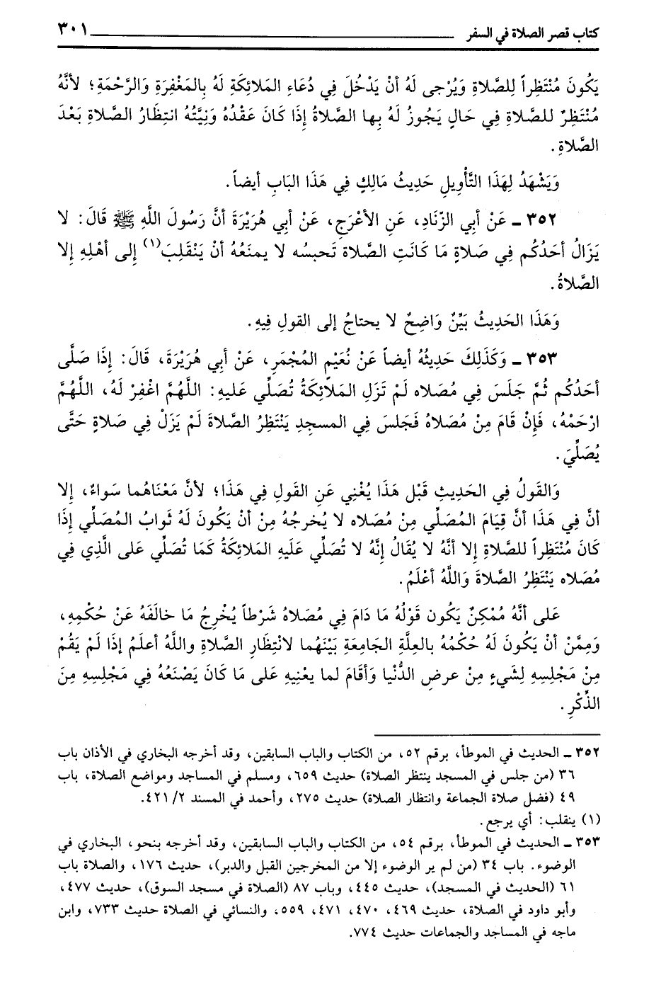 352 - عَنْ أَبِي الزِّنَادِ عَنِ الْأَعْرَجِ عَنْ أَبِي هُرَيْرَةَ أَنَّ رَسُولَ اللَّهِ صَلَّى اللَّهُ عَلَيْهِ وَسَلَّمَ قَالَ لَا يَزَالُ أَحَدُكُمْ فِي صَلَاةٍ مَا كَانَتِ الصَّلَاةُ تَحْبِسُهُ لَا يَمْنَعُهُ أَنْ يَنْقَلِبَ إِلَى أَهْلِهِ إِلَّا الصَّلَاةُ