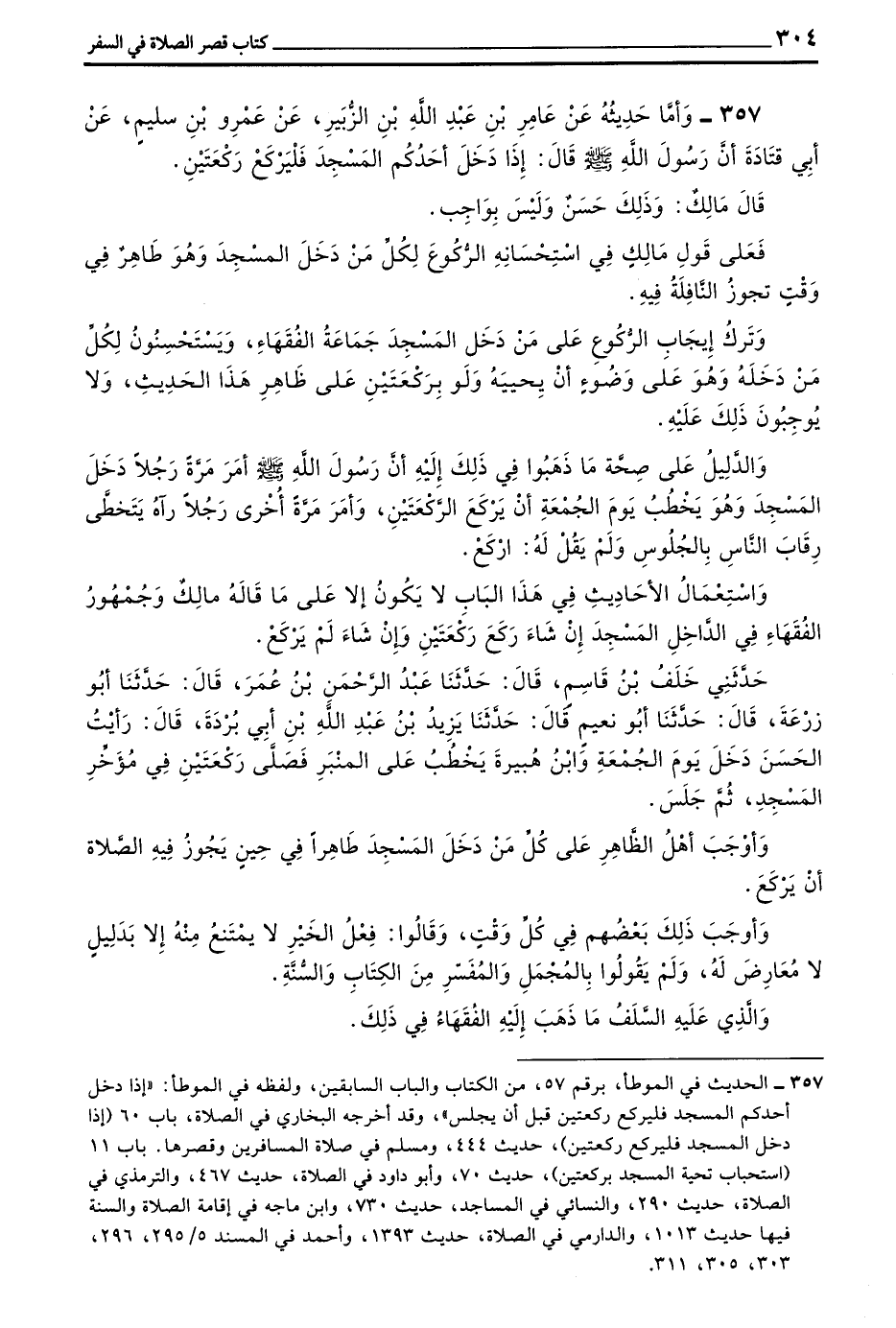357 - وَأَمَّا حَدِيثُهُ عَنْ عَامِرِ بْنِ عَبْدِ اللَّهِ بْنِ الزُّبَيْرِ عَنْ عَمْرِو بْنِ سُلَيْمٍ عَنْ أَبِي قَتَادَةَ أَنَّ رَسُولَ اللَّهِ صَلَّى اللَّهُ عَلَيْهِ وَسَلَّمَ قَالَ إِذَا دَخَلَ أَحَدُكُمُ الْمَسْجِدَ فَلْيَرْكَعْ رَكْعَتَيْنِ