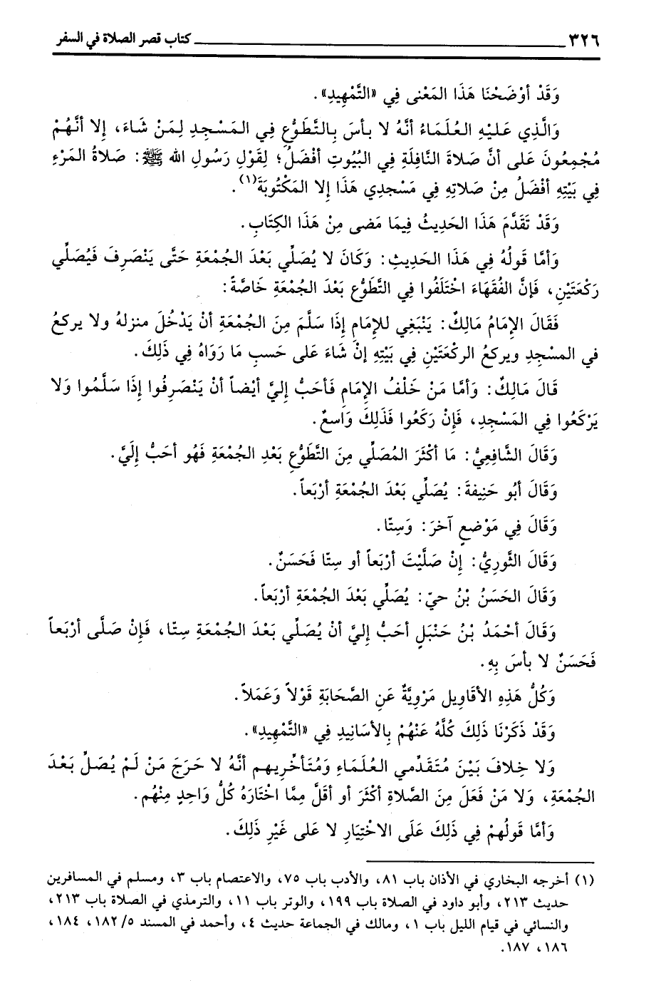 وَلَا خِلَافَ بَيْنِ مُتَقَدِّمِي الْعُلَمَاءِ وَمُتَأَخِّرِيهِمْ أَنَّهُ لَا حَرَجَ مَنْ لَمْ يُصَلِّ بَعْدَ الْجُمُعَةِ وَلَا مَنْ فَعَلَ مِنَ الصَّلَاةِ أَكْثَرَ أَوْ أَقَلَّ مِمَّا اخْتَارَهُ كُلُّ وَاحِدٌ مِنْهُمْ
