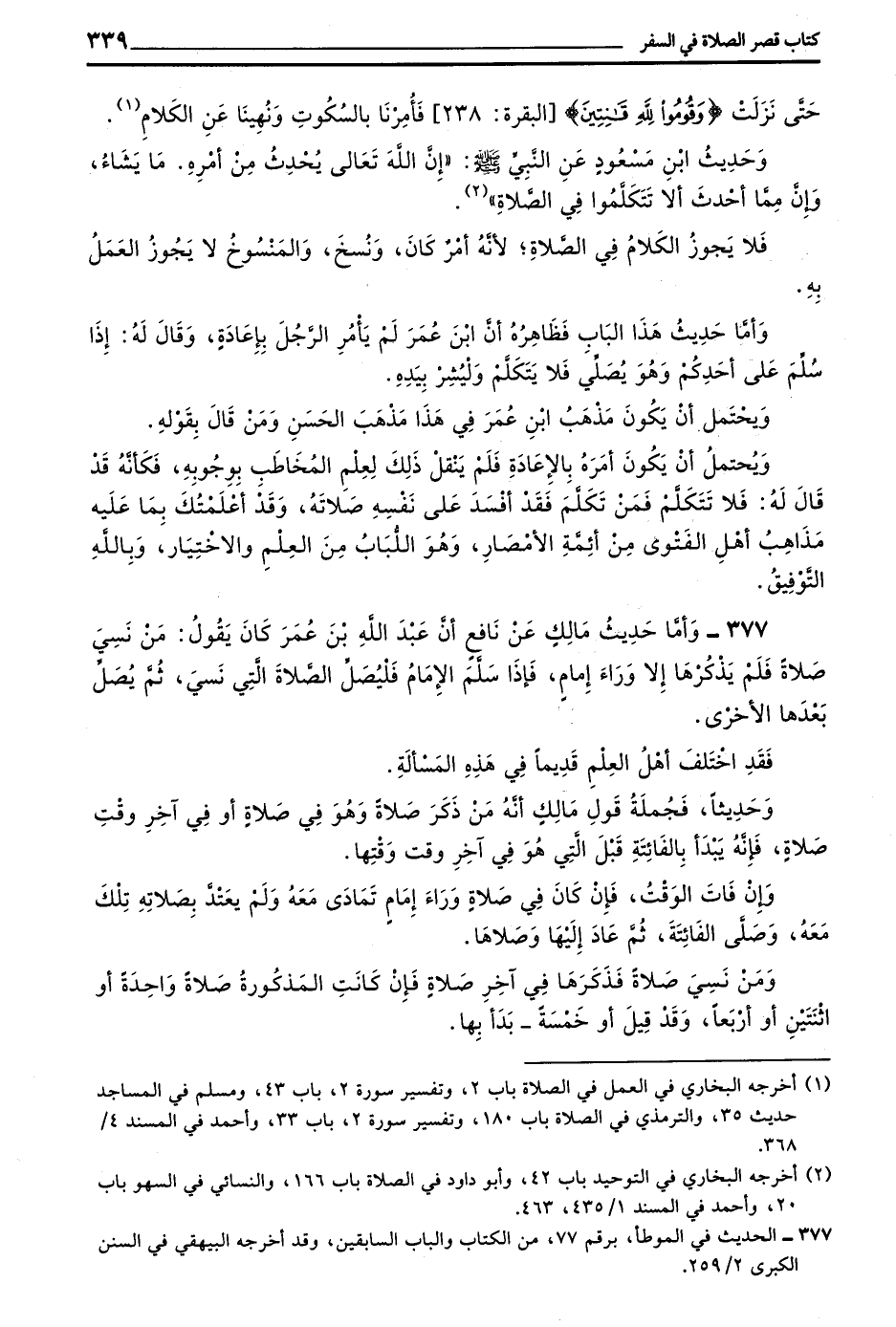 حتى نزلت (وقوموا لله قنتين) الْبَقَرَةِ 238 فَأُمِرْنَا بِالسُّكُوتِ وَنُهِينَا عَنِ الْكَلَامِ