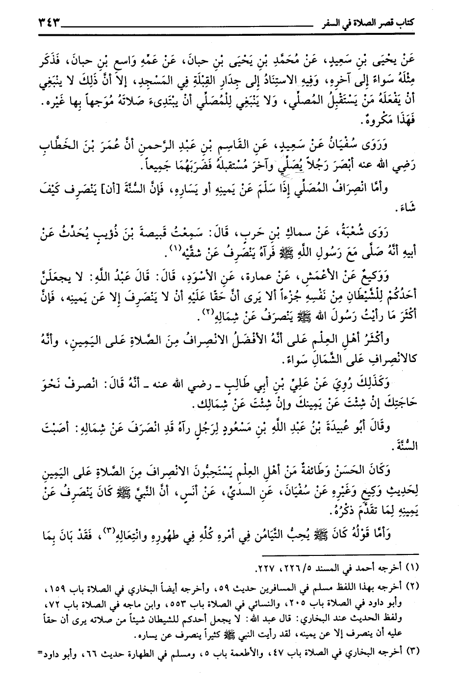 وَأَكْثَرُ أَهْلِ الْعِلْمِ عَلَى أَنَّهُ الْأَفْضَلُ الِانْصِرَافُ مِنَ الصَّلَاةِ عَلَى الْيَمِينِ وَأَنَّهُ كَالِانْصِرَافِ عَلَى الشِّمَالِ سَوَاءٌ