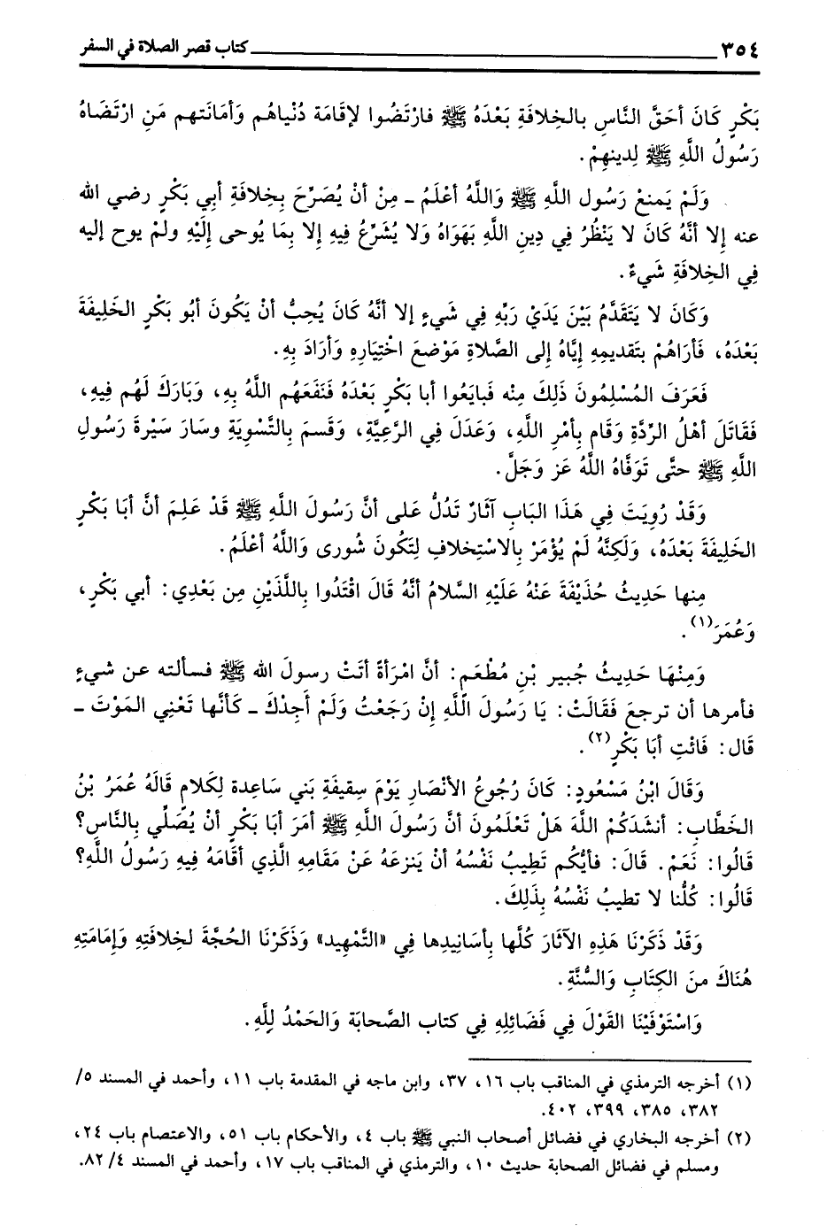 وَقَدْ ذَكَرْنَا هَذِهِ الْآثَارَ كُلَّهَا بِأَسَانِيدِهَا فِي التَّمْهِيدِ وَذَكَرْنَا الْحُجَّةَ لِخِلَافَتِهِ وَإِمَامَتِهِ هُنَاكَ مِنَ الْكِتَابِ وَالسُّنَّةِ