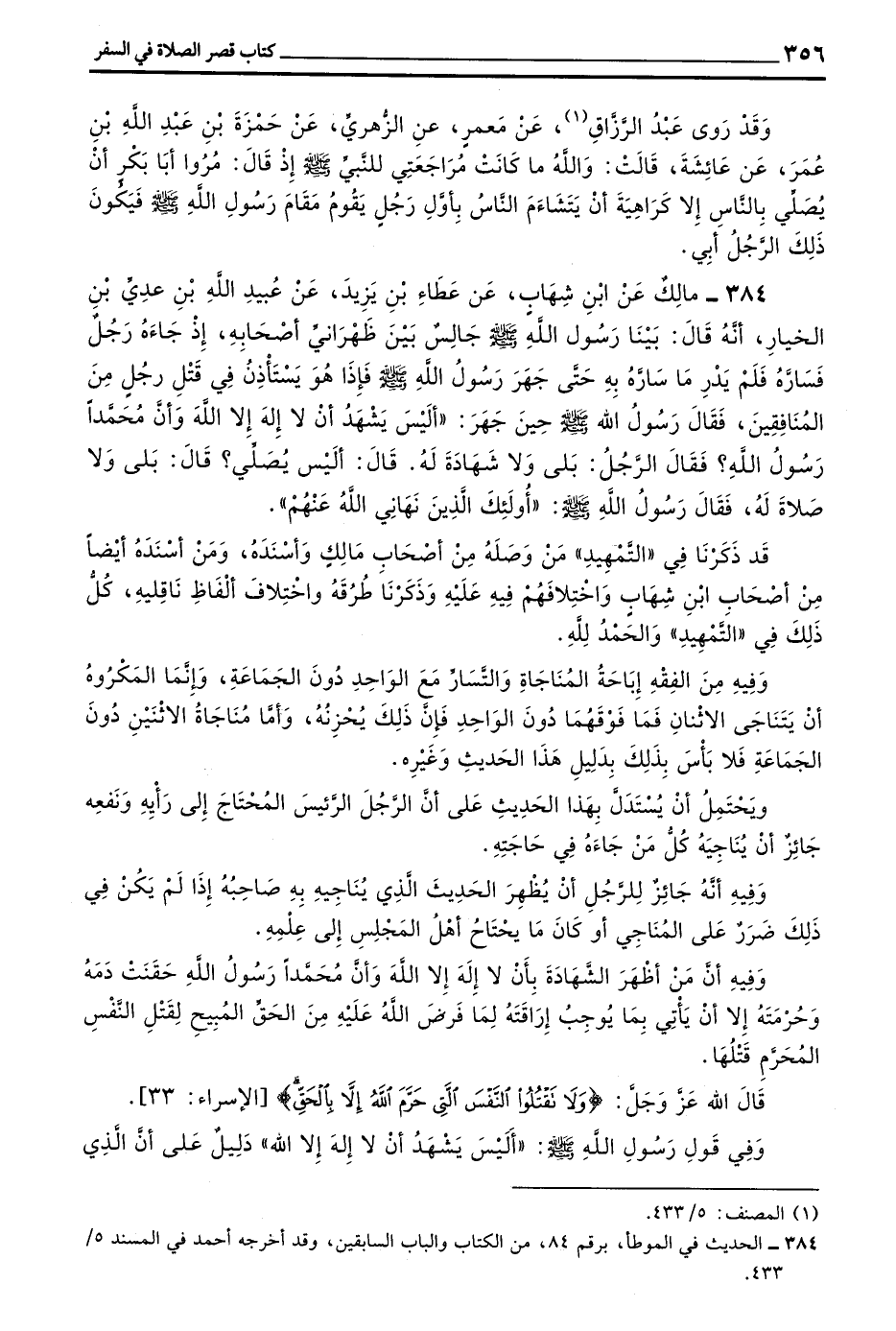 384 - مَالِكٌ عَنِ بن شِهَابٍ عَنْ عَطَاءِ بْنِ يَزِيدَ عَنْ عُبَيْدِ اللَّهِ بْنِ عَدِيِّ بْنِ الْخِيَارِ أَنَّهُ قَالَ بَيْنَا رَسُولُ اللَّهِ صَلَّى اللَّهُ عَلَيْهِ وَسَلَّمَ جَالِسٌ بَيْنَ ظَهْرَانَيْ أَصْحَابِهِ إِذْ جَاءَهُ رَجُلٌ فَسَارَّهُ فَلَمْ يَدْرِ مَا سَارَّهُ بِهِ حَتَّى جَهَرَ رَسُولُ اللَّهِ صَلَّى اللَّهُ عَلَيْهِ وَسَلَّمَ فَإِذَا هُوَ يَسْتَأْذِنُ فِي قَتْلِ رَجُلٍ مِنَ الْمُنَافِقِينَ فَقَالَ رَسُولُ اللَّهِ صَلَّى اللَّهُ عَلَيْهِ وَسَلَّمَ حِينَ جَهَرَ أَلَيْسَ يَشْهَدُ أَنْ لَا إِلَهَ إِلَّا اللَّهُ وَأَنَّ مُحَمَّدًا رَسُولُ اللَّهِ فَقَالَ الرَّجُلُ بَلَى وَلَا شَهَادَةَ لَهُ قَالَ أَلَيْسَ يُصَلِّي قَالَ بَلَى وَلَا صَلَاةَ لَهُ فَقَالَ رَسُولُ اللَّهِ صَلَّى اللَّهُ عَلَيْهِ وَسَلَّمَ أُولَئِكَ الَّذِينَ نَهَانِي اللَّهُ عَنْهُمْ