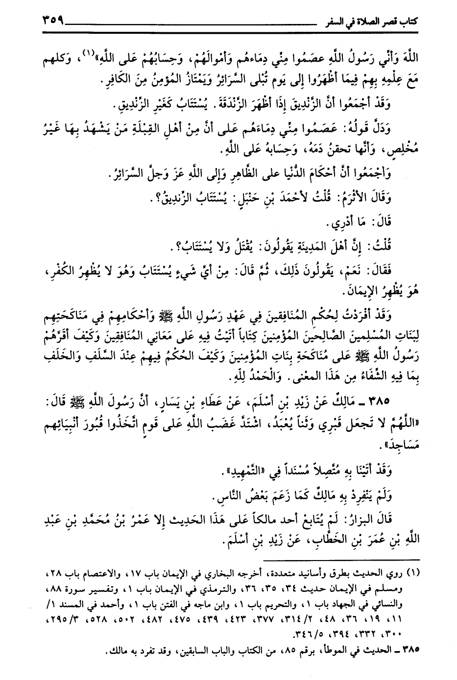 385 - مَالِكٌ عَنْ زَيْدِ بْنِ أَسْلَمَ عَنْ عَطَاءِ بْنِ يَسَارٍ أَنَّ رَسُولَ اللَّهِ صَلَّى اللَّهُ عَلَيْهِ وَسَلَّمَ قَالَ اللَّهُمَّ لَا تَجْعَلْ قَبْرِي وَثَنًا يُعْبَدُ اشْتَدَّ غَضَبُ اللَّهِ عَلَى قَوْمٍ اتَّخَذُوا قُبُورَ أَنْبِيَائِهِمْ مَسَاجِدَ