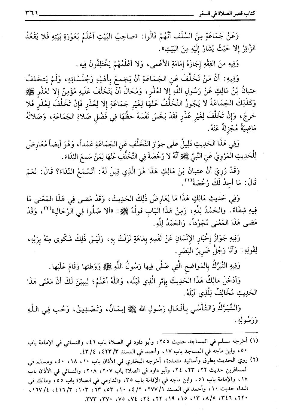 وَفِيهِ أَنَّ مَنْ تَخَلَّفَ عَنِ الْجَمَاعَةِ أَنْ يَجْمَعَ بِأَهْلِهِ وَجُلَسَائِهِ وَلَمْ يَتَخَلَّفْ عِتْبَانُ بْنُ مَالِكٍ عَنْ رَسُولِ اللَّهِ إِلَّا لِعُذْرٍ وَمُحَالٌ أَنْ يَتَخَلَّفَ عَلَيْهِ مُؤْمِنٌ إِلَّا لِعُذْرٍ صَلَّى اللَّهُ عَلَيْهِ وَسَلَّمَ وَكَذَلِكَ الْجَمَاعَةُ لَا يَجُوزُ التَّخَلُّفُ عَنْهَا لِغَيْرِ جَمَاعَةٍ إِلَّا لعذر فإن تخلف لعذر فلا حرج وإن تَخَلَّفَ لِغَيْرِ عُذْرٍ فَقَدْ بَخَسَ نَفْسَهُ حَظَّهَا فِي فَضْلِ صَلَاةِ الْجَمَاعَةِ وَصَلَاتُهُ مَاضِيَةٌ مُجْزِئَةٌ عَنْهُ