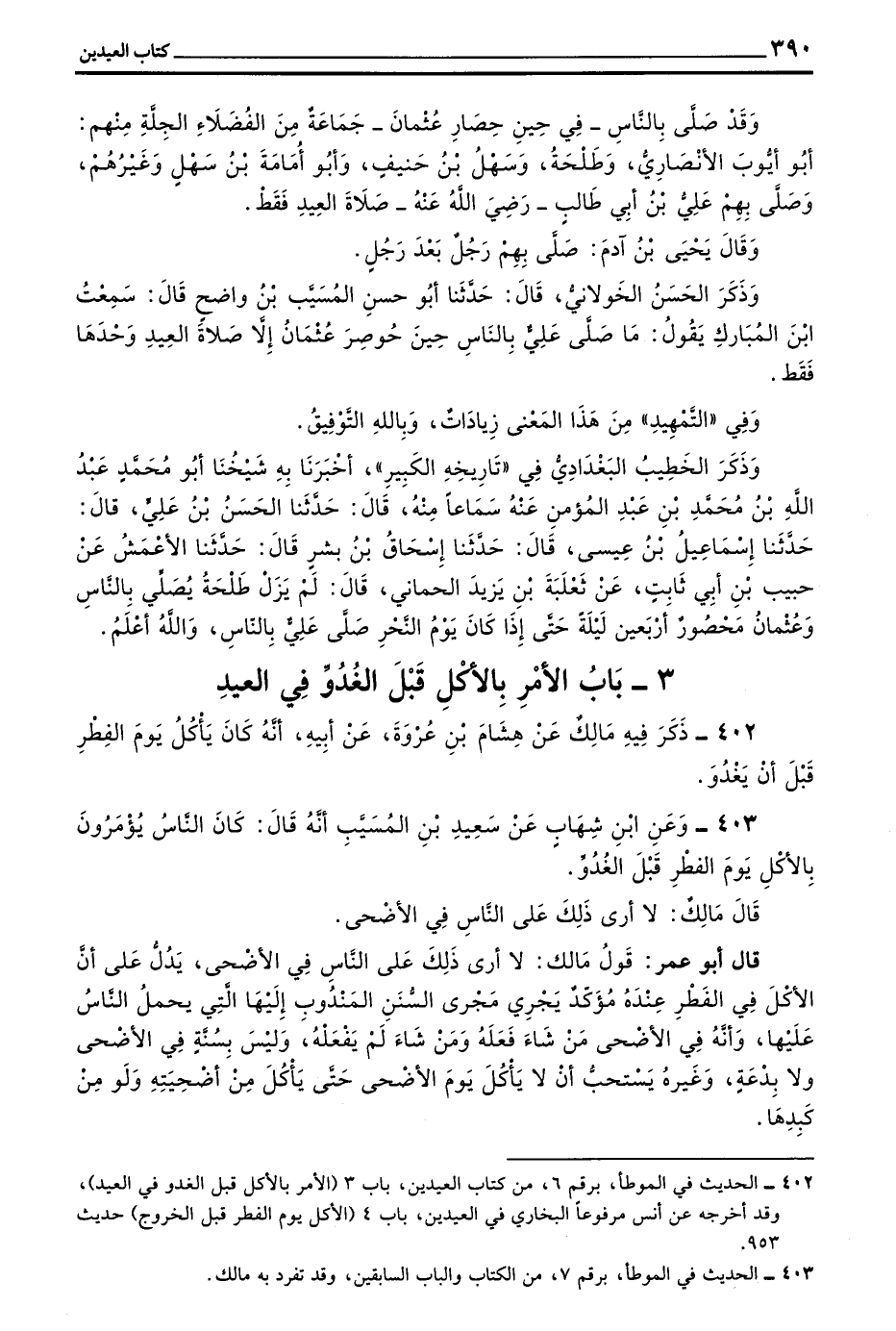 403 - وعن بن شِهَابٍ عَنْ سَعِيدِ بْنِ الْمُسَيَّبِ أَنَّهُ قَالَ كَانَ النَّاسُ يُؤْمَرُونَ بِالْأَكْلِ يَوْمَ الْفِطْرِ قَبْلَ الْغُدُوِّ