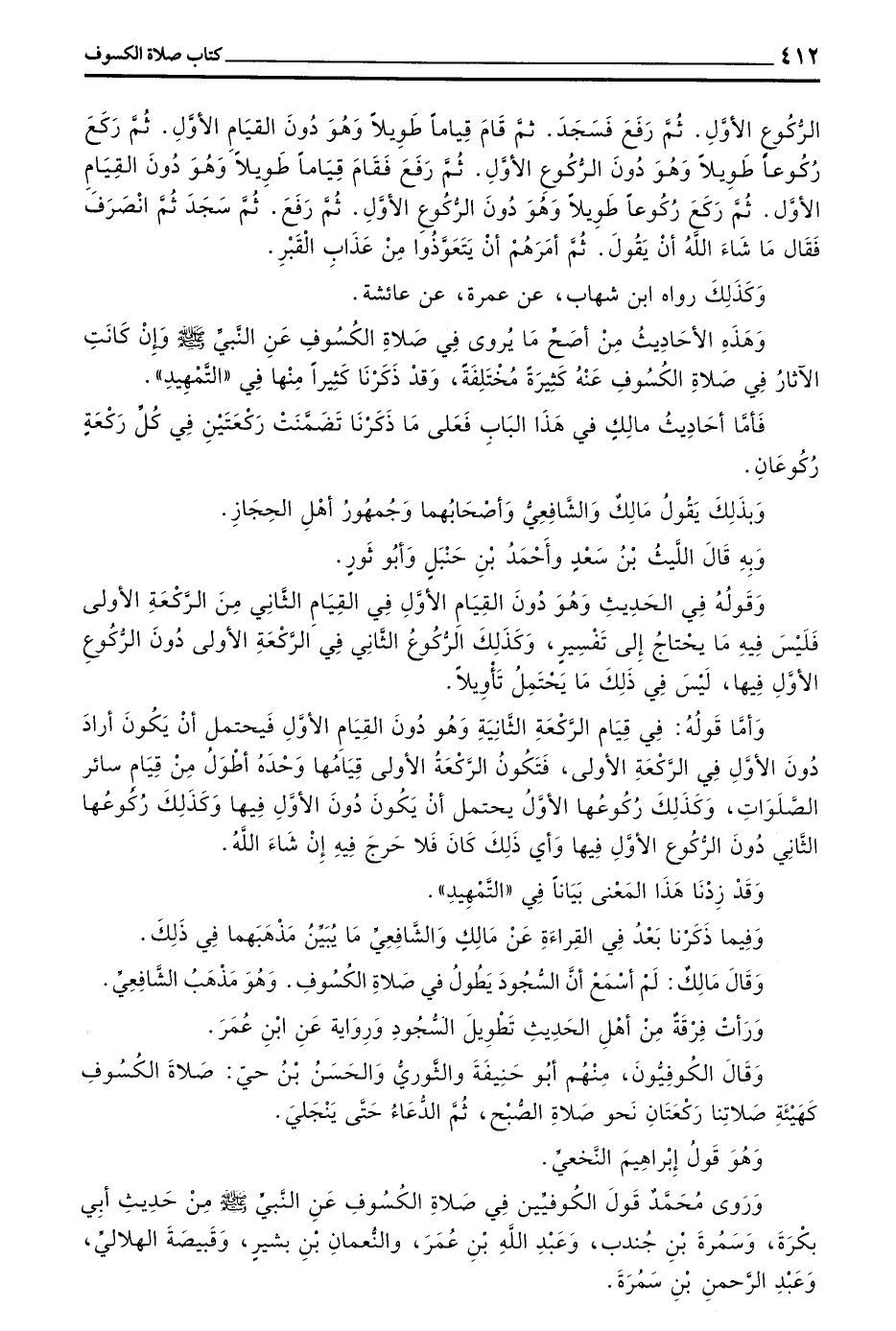 وَأَمَّا قَوْلُهُ فِي قِيَامِ الرَّكْعَةِ الثَّانِيَةِ وَهُوَ دُونَ الْقِيَامِ الْأَوَّلِ فَيُحْتَمَلُ أَنْ يَكُونَ أَرَادَ دُونَ الْأَوَّلِ فِي الرَّكْعَةِ الْأُولَى فَتَكُونُ الرَّكْعَةُ الْأَوْلَى قِيَامُهَا وَحْدَهُ أَطْوَلُ مِنْ قِيَامِ سَائِرِ الصَّلَوَاتِ وَكَذَلِكَ رُكُوعُهَا الْأَوَّلُ يُحْتَمَلُ أَنْ يَكُونَ دُونَ الْأَوَّلِ فِيهَا وَكَذَلِكَ رُكُوعُهَا الثَّانِي دُونَ الرُّكُوعِ الْأَوَّلِ فِيهَا وَأَيُّ ذَلِكَ كَانَ فَلَا حَرَجَ فِيهِ إِنْ شَاءَ اللَّهُ