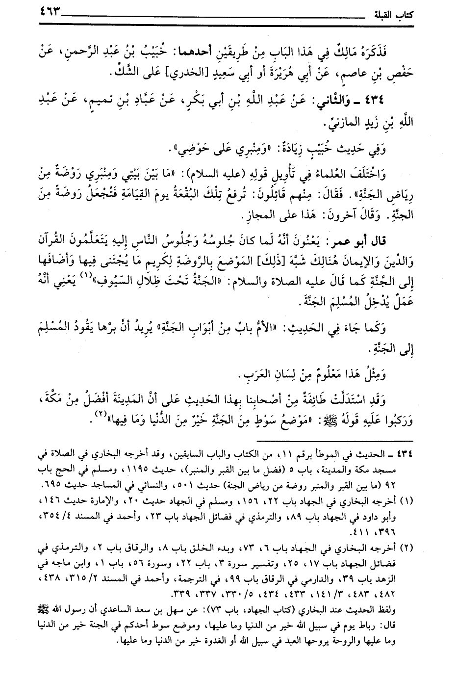 434 - وَالثَّانِي عَنْ عَبْدِ اللَّهِ بْنِ أَبِي بَكْرٍ عَنْ عَبَّادِ بْنِ تَمِيمٍ عَنْ عَبْدِ اللَّهِ بْنِ زَيْدٍ الْمَازِنِيِّ