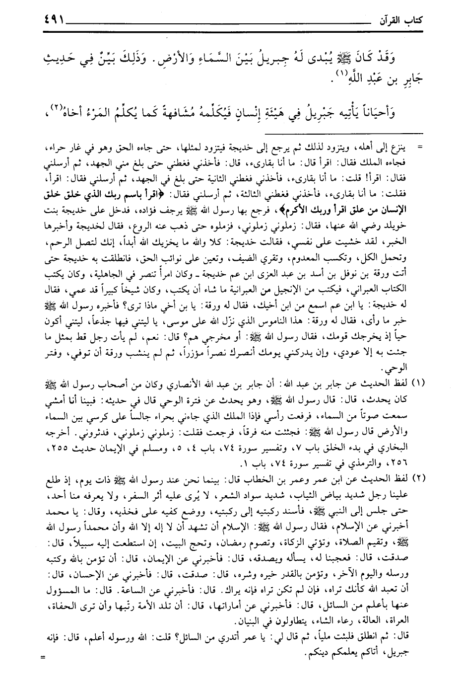 وَأَحْيَانًا يَأْتِيهِ جِبْرِيلُ فِي هَيْئَةِ إِنْسَانٍ فَيُكَلِّمُهُ مُشَافَهَةً كَمَا يُكَلِّمُ الْمَرْءُ أَخَاهُ