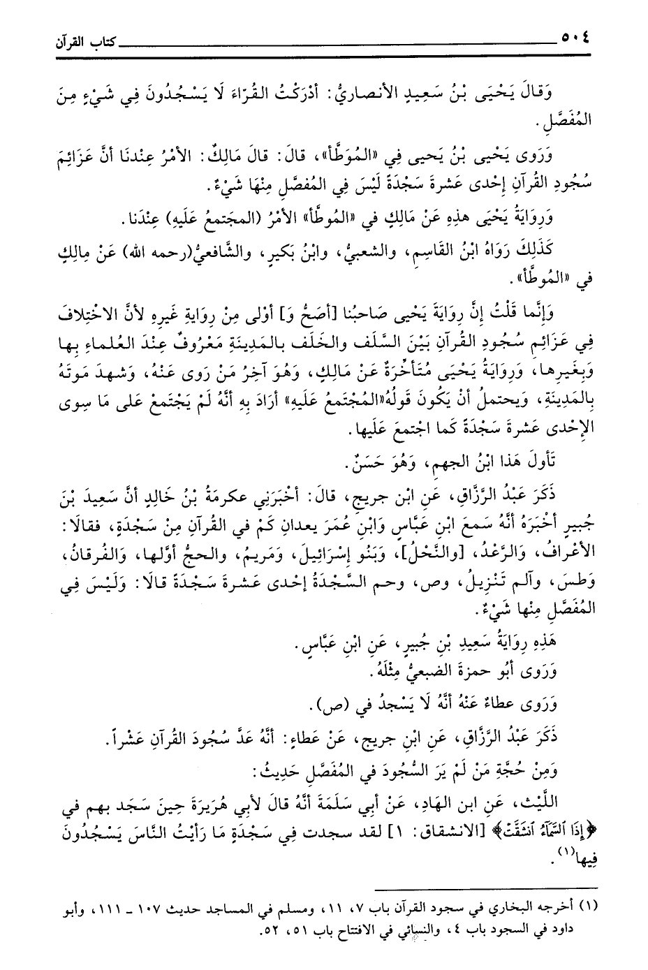 ذكر عبد الرزاق عن بن جُرَيْجٍ عَنْ عَطَاءٍ أَنَّهُ عَدَّ سُجُودَ الْقُرْآنِ عَشْرًا