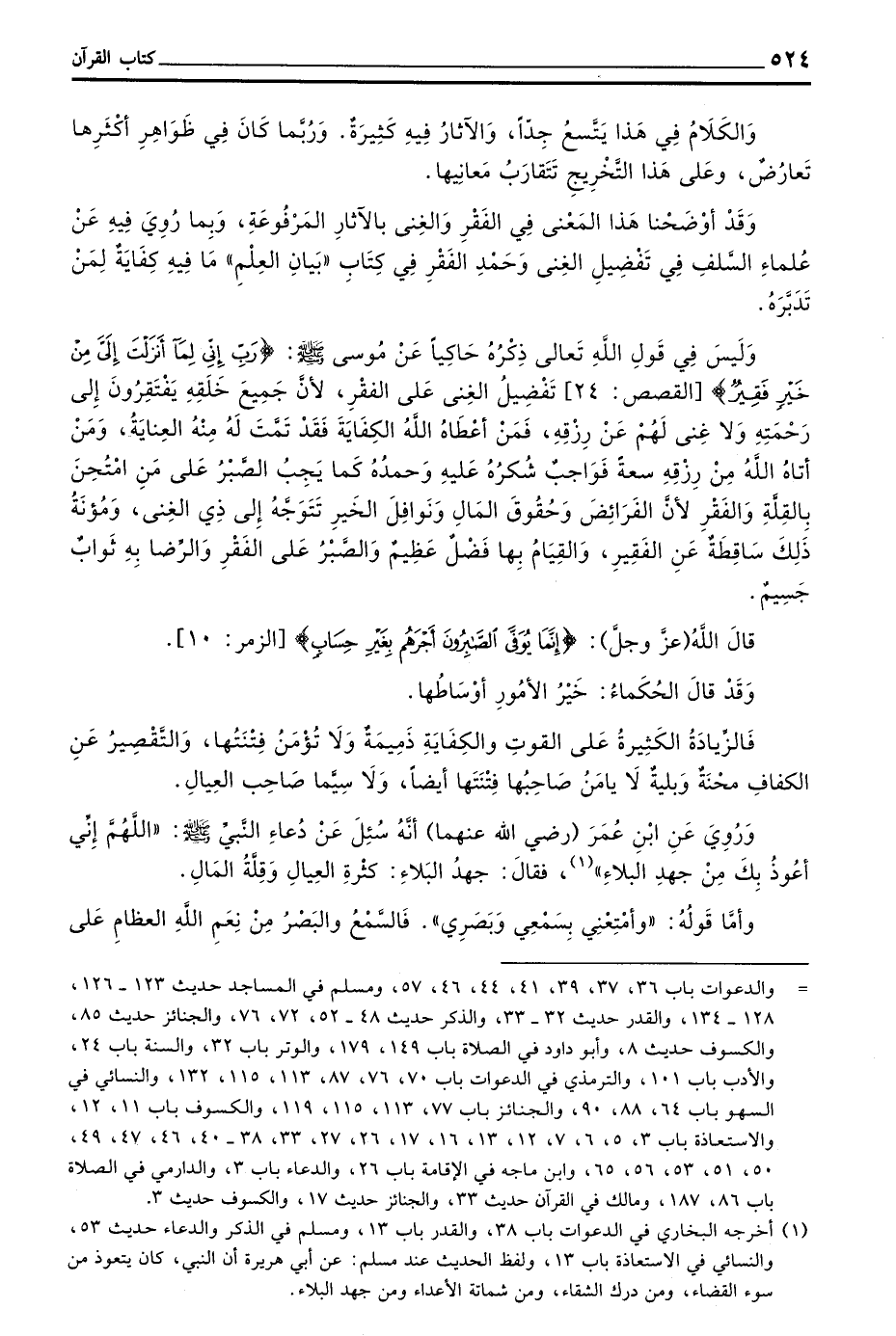 وَقَدْ أَوْضَحْنَا هَذَا الْمَعْنَى فِي الْفَقْرِ وَالْغِنَى بِالْآثَارِ الْمَرْفُوعَةِ وَبِمَا رُوِيَ فِيهِ عَنْ عُلَمَاءِ السَّلَفِ فِي تَفْضِيلِ الْغِنَى وَحَمْدِ الْفَقْرِ فِي كِتَابِ بَيَانِ الْعَلَمِ مَا فِيهِ كِفَايَةٌ لِمَنْ تَدَبَّرَهُ