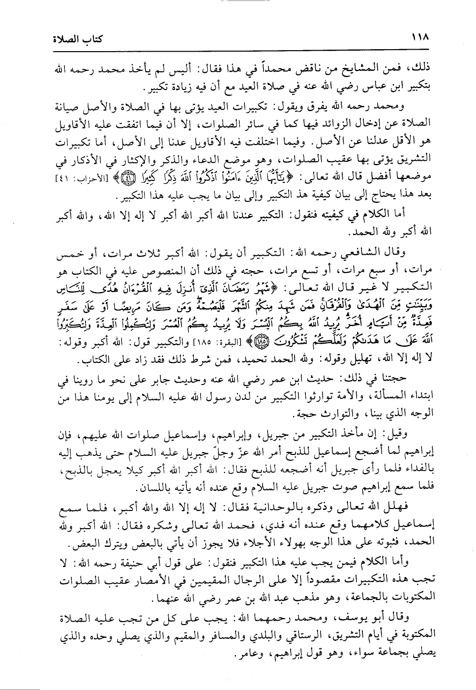 ومحمد رحمه الله يفرق ويقول: تكبيرات العيد يؤتى بها في الصلاة والأصل صيانة الصلاة عن إدخال الزوائد فيها كما في سائر الصلوات، إلا أن فيما اتفقت عليه الأقاويل هو الأقل عدلنا عن الأصل. وفيما اختلفت فيه الأقاويل عدنا إلى الأصل، أما تكبيرات التشريق يؤتى بها عقيب الصلوات، وهو موضع الدعاء والذكر والإكثار في الأذكار في موضعها أفضل قال الله تعالى: {يأَيُّهَا الَّذِينَ ءامَنُواْ اذْكُرُواْ اللَّهَ ذِكْراً كَثِيراً} (الأحزاب: 41) بعد هذا يحتاج إلى بيان كيفية هذ التكبير وإلى بيان ما يجب عليه هذا التكبير.