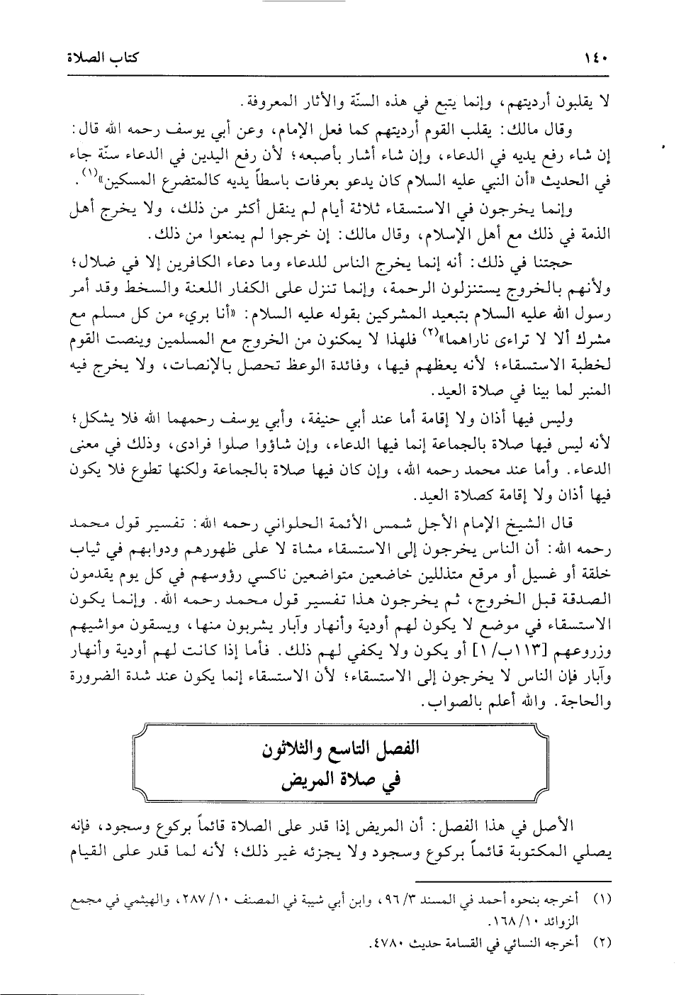 قال الشيخ الإمام الأجل شمس الأئمة الحلواني رحمه الله: تفسير قول محمد رحمه الله: أن الناس يخرجون إلى الاستسقاء مشاة لا على ظهورهم ودوابهم في ثياب خلقة أو غسيل أو مرقع متذللين خاضعين متواضعين ناكسي رؤوسهم في كل يوم يقدمون الصدقة قبل الخروج، ثم يخرجون هذا تفسير قول محمد رحمه الله. وإنما يكون الاستسقاء في موضع لا يكون لهم أودية وأنهار وآبار يشربون منها، ويسقون مواشيهم وزروعهم (113ب1) أو يكون ولا يكفي لهم ذلك. فأما إذا كانت لهم أودية وأنهار وآبار فإن الناس لا يخرجون إلى الاستسقاء؛ لأن الاستسقاء إنما يكون عند شدة الضرورة والحاجة. والله أعلم بالصواب.