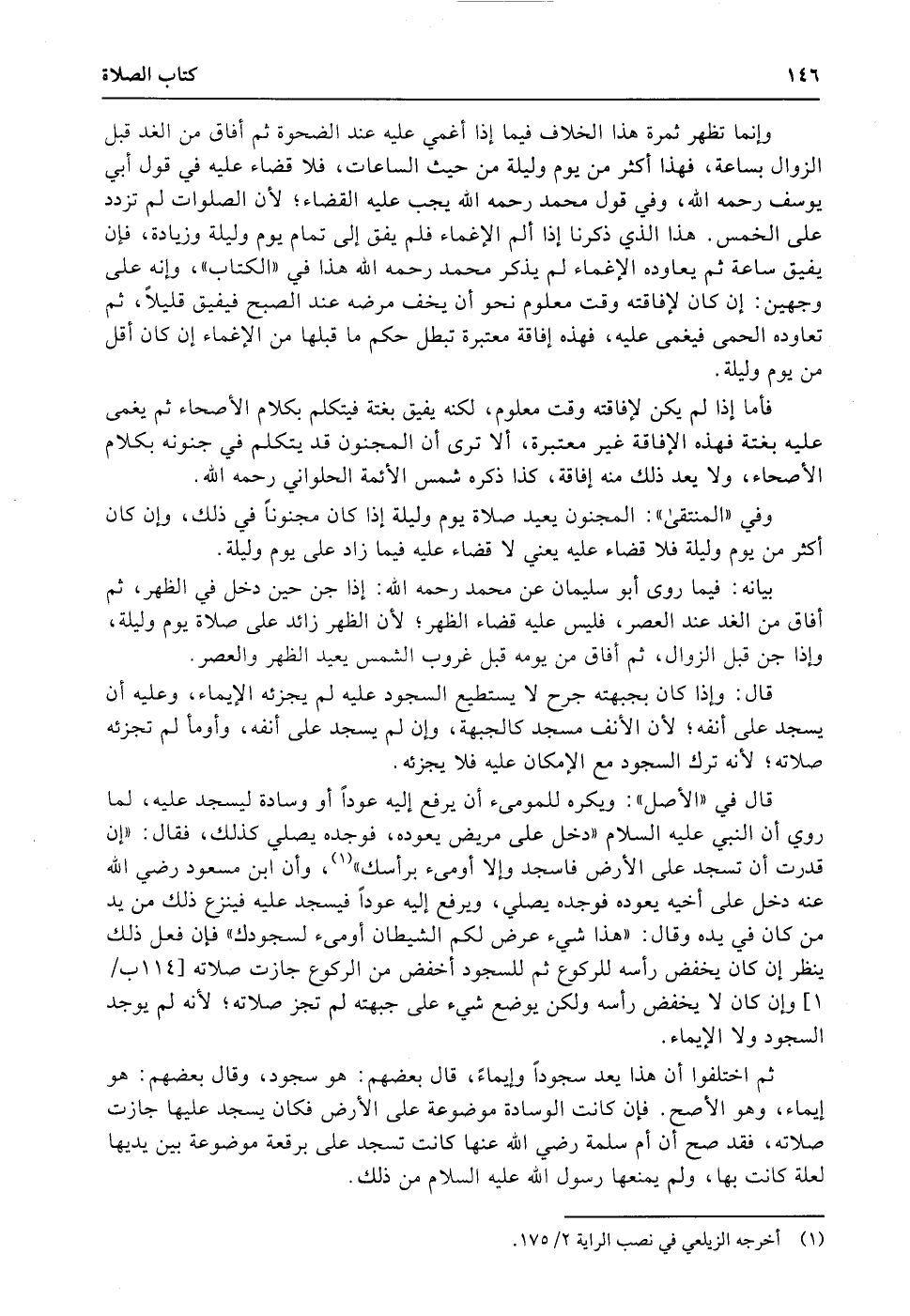 ثم اختلفوا أن هذا يعد سجوداً وإيماءً، قال بعضهم: هو سجود، وقال بعضهم: هو إيماء، وهو الأصح. فإن كانت الوسادة موضوعة على الأرض فكان يسجد عليها جازت صلاته، فقد صح أن أم سلمة رضي الله عنها كانت تسجد على برقعة موضوعة بين يديها لعلة كانت بها، ولم يمنعها رسول الله عليه السلام من ذلك.