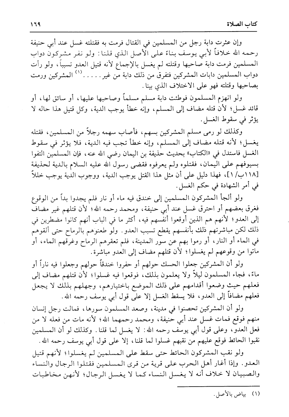 ولو أن المشركين تحصنوا في مدينة، وصعد المسلمون سورها، فمالت رجل إنسان منهم فوقع فمات غسل عند أبي حنيفة، ومحمد رحمهما الله؛ لأنه مات من فعله لا من فعل العدو، وعلى قول أبي يوسف رحمه الله: لا يغسل لما قلنا. وكذلك لو أن المسلمين نقبوا الحائط فوقع عليهم من نقبهم غسلوا لما قلنا، إلا على قول أبي يوسف رحمه الله.