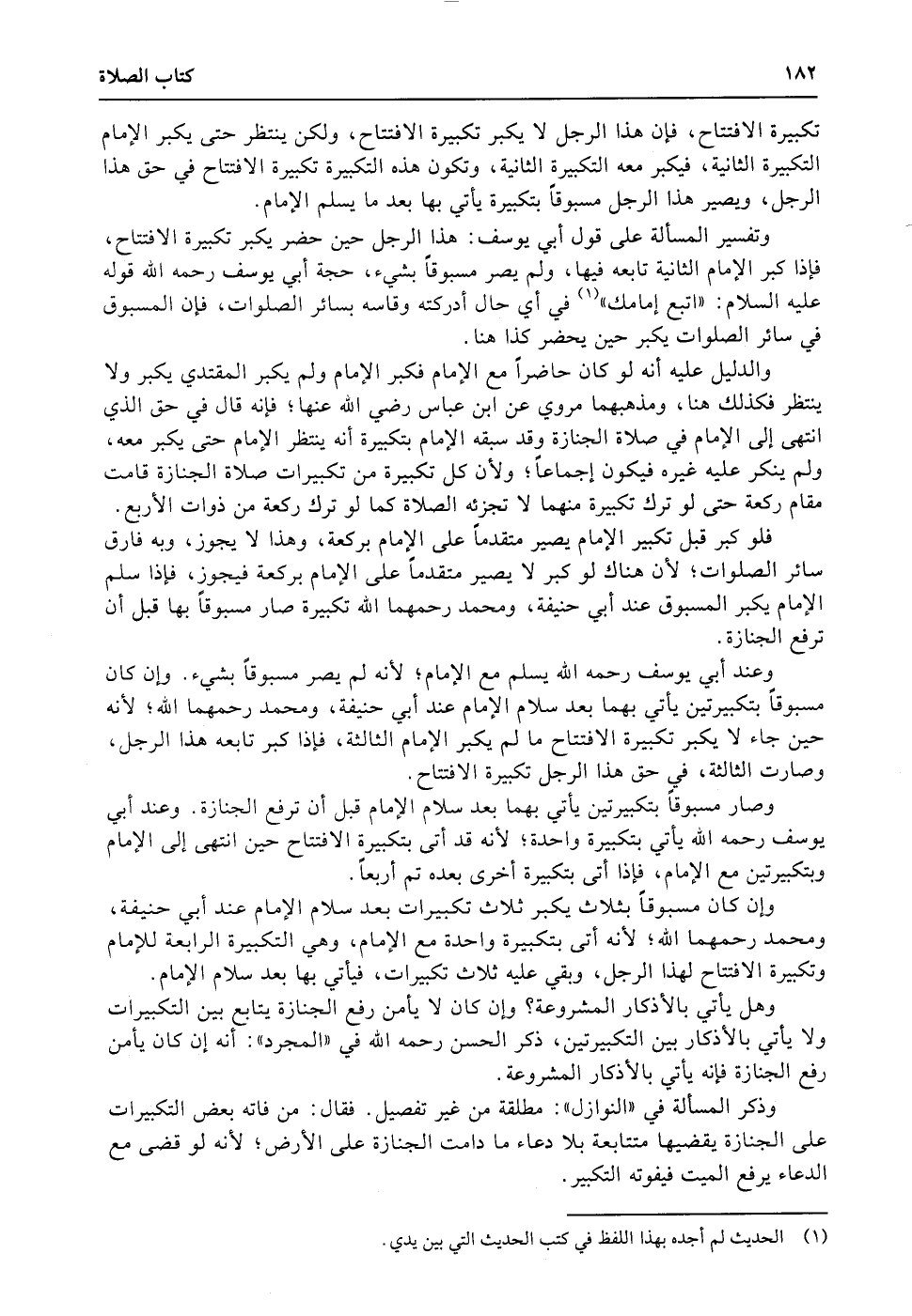 وتفسير المسألة على قول أبي يوسف: هذا الرجل حين حضر يكبر تكبيرة الافتتاح، فإذا كبر الإمام الثانية تابعه فيها، ولم يصر مسبوقاً بشيء، حجة أبي يوسف رحمه الله قوله عليه السلام: «اتبع إمامك» في أي حال أدركته وقاسه بسائر الصلوات، فإن المسبوق في سائر الصلوات يكبر حين يحضر كذا هنا.