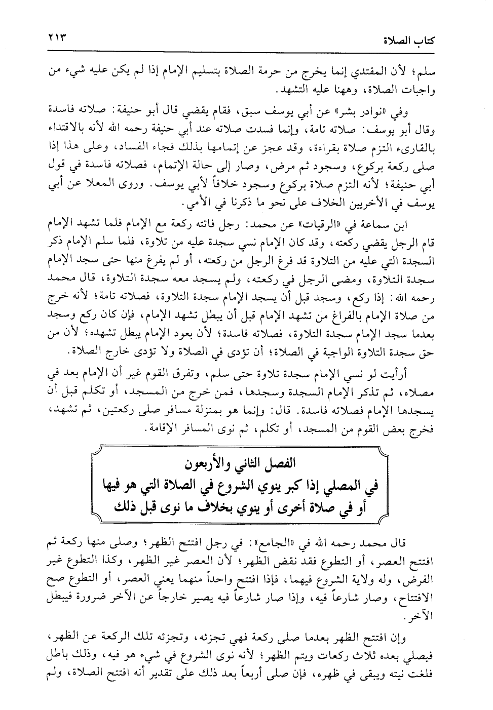 الفصل الرابع والثلاثون في المصلي إذا كبر ينوي الشروع في الصلاة التي هو فيهاأو في صلاة أخرى أو ينوي بخلاف ما نوى قبل ذلك