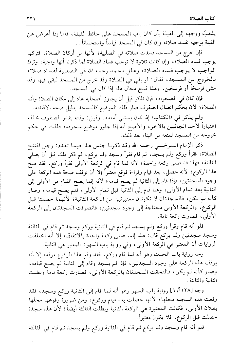 فإن خرج من المسجد فسدت صلاته في الصلبية؛ لأنها من أركان الصلاة، فتركها يوجب فساد الصلاة، وإن كانت تلاوة لا توجب فساد الصلاة لما ذكرنا أنها واجبة، وترك الواجب لا يوجب فساد الصلاة، وعلل محمد رحمه الله في الصلبية لفساد صلاته بالخروج عن المسجد، فقال: لو بقي في الصلاة وقد خرج من المسجد لبقي فيها وقد مشى فرسخاً أو فرسخين، وهذا فسخ محال هذا إذا كان في المسجد.