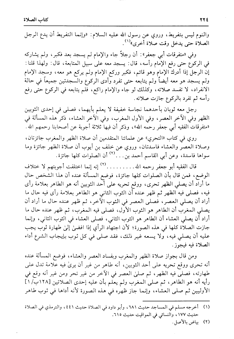 قال الفقيه أبو جعفر رحمه الله......... إنه إنما اختلفت أجوبتهم لا ختلاف الوضع، فمن قال بأن الصلوات كلها جائزة، فوضع المسألة عنده أن هذا الشخص حال ما أراد أن يصلي الظهر تحرى، ووقع تحريه على أحد الثوبين أنه هو الطاهر بعلامة رأى فيه، فصلى فيه الظهر ثم ظهر عنده أن الثوب الثاني هو الطاهر بعلامة رأى فيه حال ما أراد أن يصلي العصر، فصلى العصر في الثوب الآخر، ثم ظهر عنده حال ما أراد أن يصلي المغرب أن الطاهر هو الثوب الأول، فصلى فيه المغرب، ثم ظهر عنده حال ما أراد أن يصلي العشاء أن الطاهر هو الثوب الثاني، فصلى العشاء في الثوب الثاني، وإنما جازت الصلاة كلها في هذه الصورة؛ لأن اجتهاد الرأي إذا افضى إلى طهارة ثوب يجب عليه أن يصلي فيه، ولا يسعه غير ذلك، فقد صلى في كل ثوب بإيجاب الشرع أداء الصلاة فيه فيجوز.