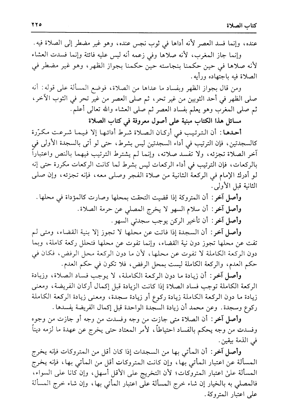 مسائل هذا الكتاب مبنية على أصول معروفة في كتاب الصلاة