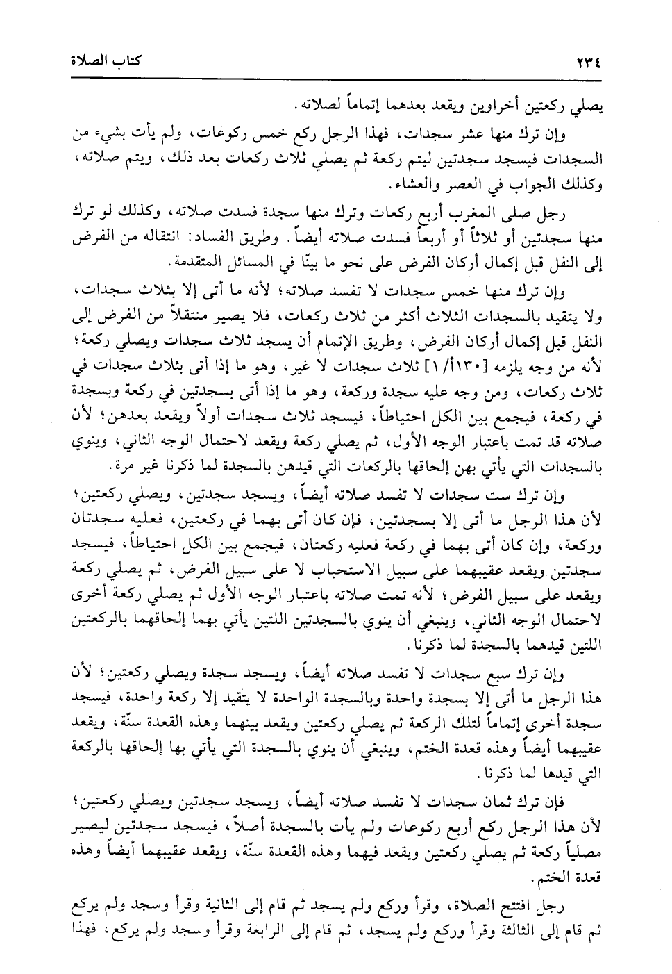رجل صلى المغرب أربع ركعات وترك منها سجدة فسدت صلاته، وكذلك لو ترك منها سجدتين أو ثلاثاً أو أربعاً فسدت صلاته أيضاً. وطريق الفساد: انتقاله من الفرض إلى النفل قبل إكمال أركان الفرض على نحو ما بينّا في المسائل المتقدمة.