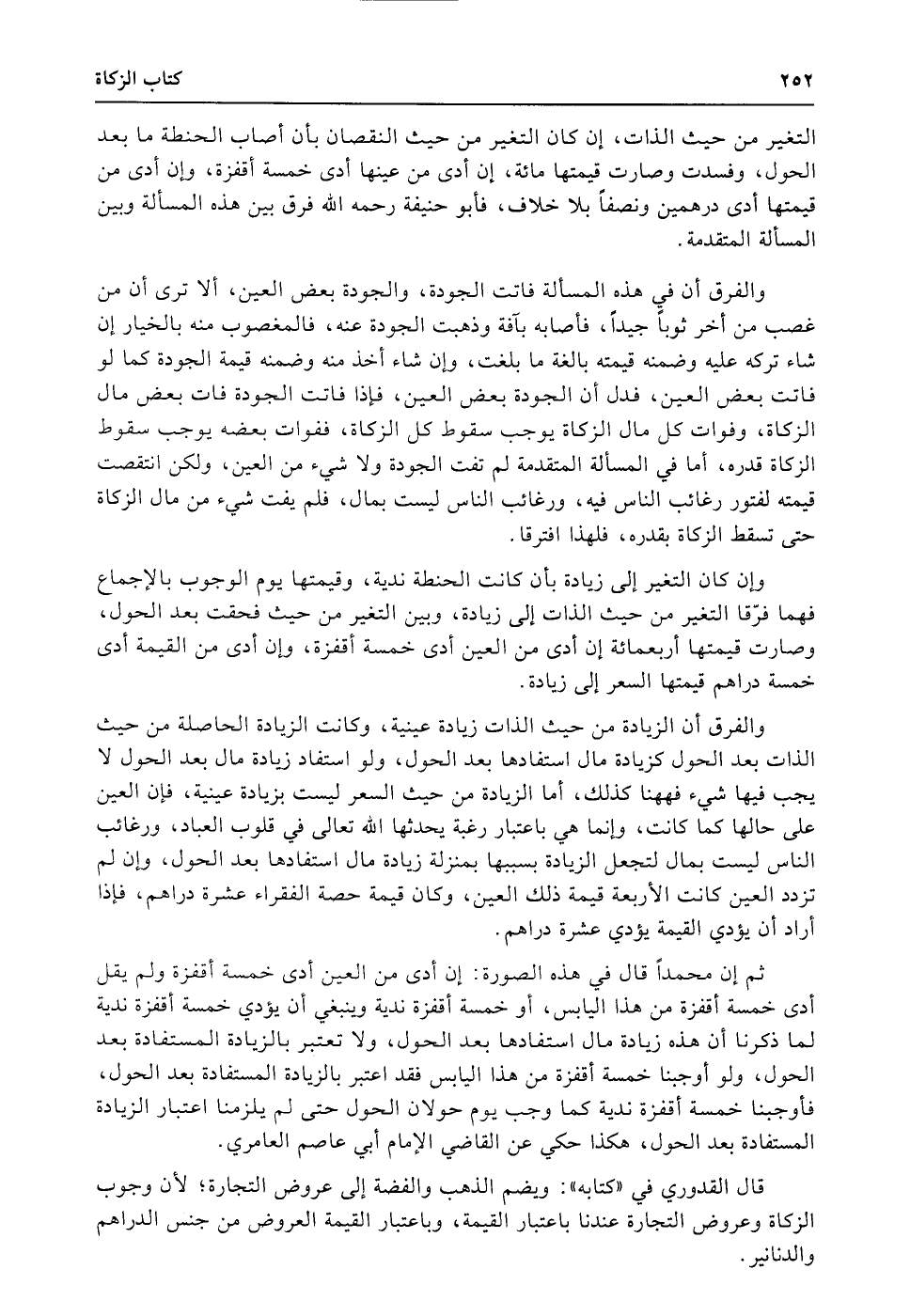 التغير من حيث الذات، إن كان التغير من حيث النقصان بأن أصاب الحنطة ما بعد الحول، وفسدت وصارت قيمتها مائة، إن أدى من عينها أدى خمسة أقفزة، وإن أدى من قيمتها أدى درهمين ونصفاً بلا خلاف، فأبو حنيفة رحمه الله فرق بين هذه المسألة وبين المسألة المتقدمة.