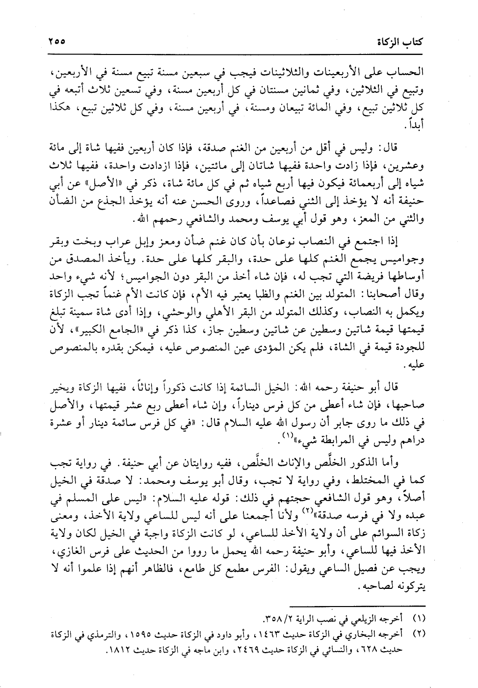 وأما الذكور الخلَّص والإناث الخلَّص، ففيه روايتان عن أبي حنيفة. في رواية تجب كما في المختلط، وفي رواية لا تجب، وقال أبو يوسف ومحمد: لا صدقة في الخيل أصلاً، وهو قول الشافعي حجتهم في ذلك: قوله عليه السلام: «ليس على المسلم في عبده ولا في فرسه صدقة» ولأنا أجمعنا على أنه ليس للساعي ولاية الأخذ، ومعنى زكاة السوائم على أن ولاية الأخذ للساعي، لو كانت الزكاة واجبة في الخيل لكان ولاية الأخذ فيها للساعي، وأبو حنيفة رحمه الله يحمل ما رووا من الحديث على فرس الغازي، ويجب عن فصيل الساعي ويقول: الفرس مطمع كل طامع، فالظاهر أنهم إذا علموا أنه لا يتركونه لصاحبه.