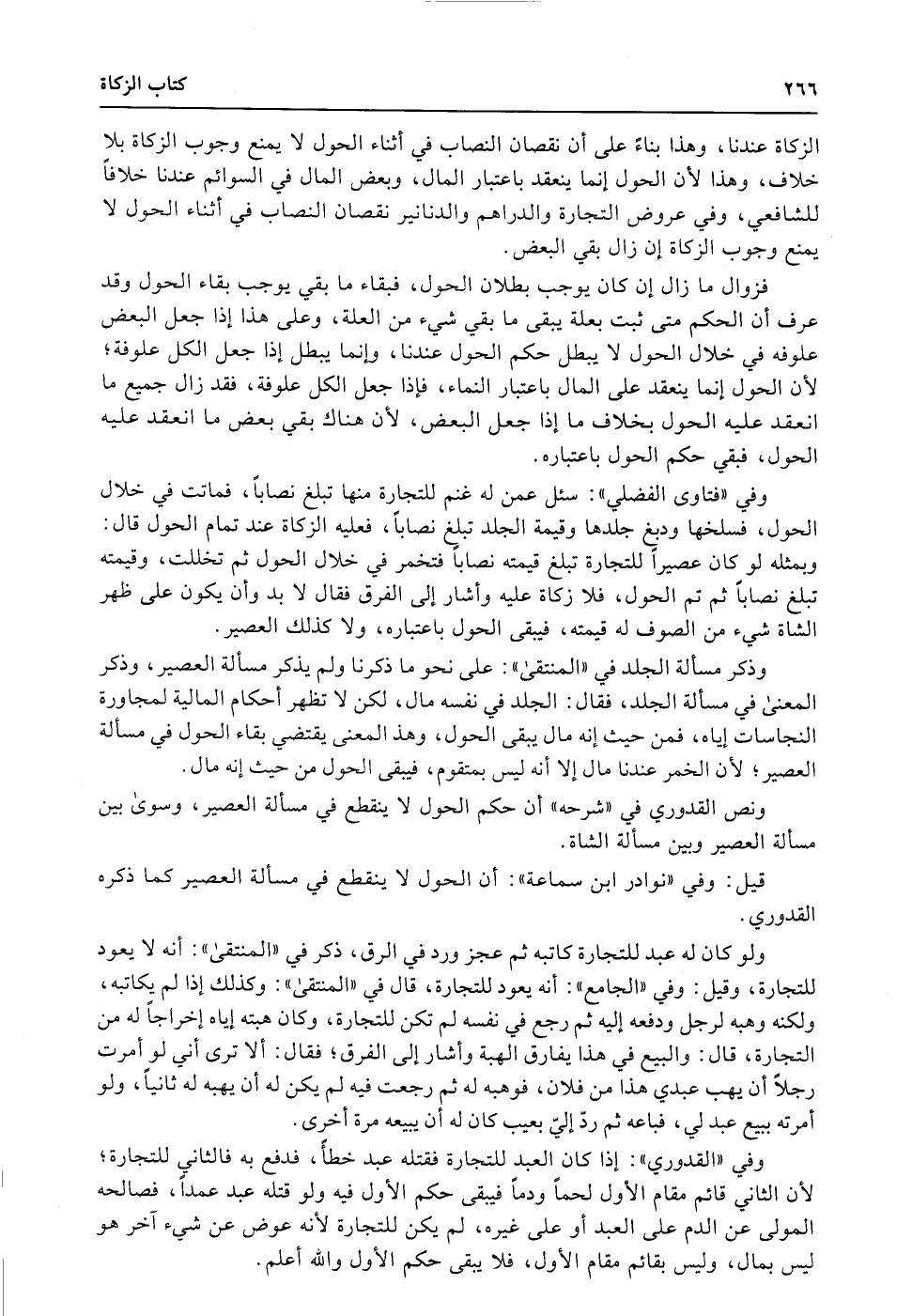 وذكر مسألة الجلد في «المنتقى» : على نحو ما ذكرنا ولم يذكر مسألة العصير، وذكر المعنى في مسألة الجلد، فقال: الجلد في نفسه مال، لكن لا تظهر أحكام المالية لمجاورة النجاسات إياه، فمن حيث إنه مال يبقى الحول، وهذ المعنى يقتضي بقاء الحول في مسألة العصير؛ لأن الخمر عندنا مال إلا أنه ليس بمتقوم، فيبقى الحول من حيث إنه مال.h