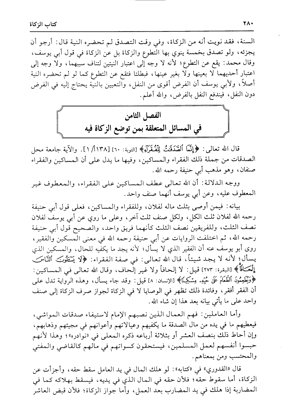 الفصل الثامن في المسائل المتعلقة بمن توضع الزكاة فيه