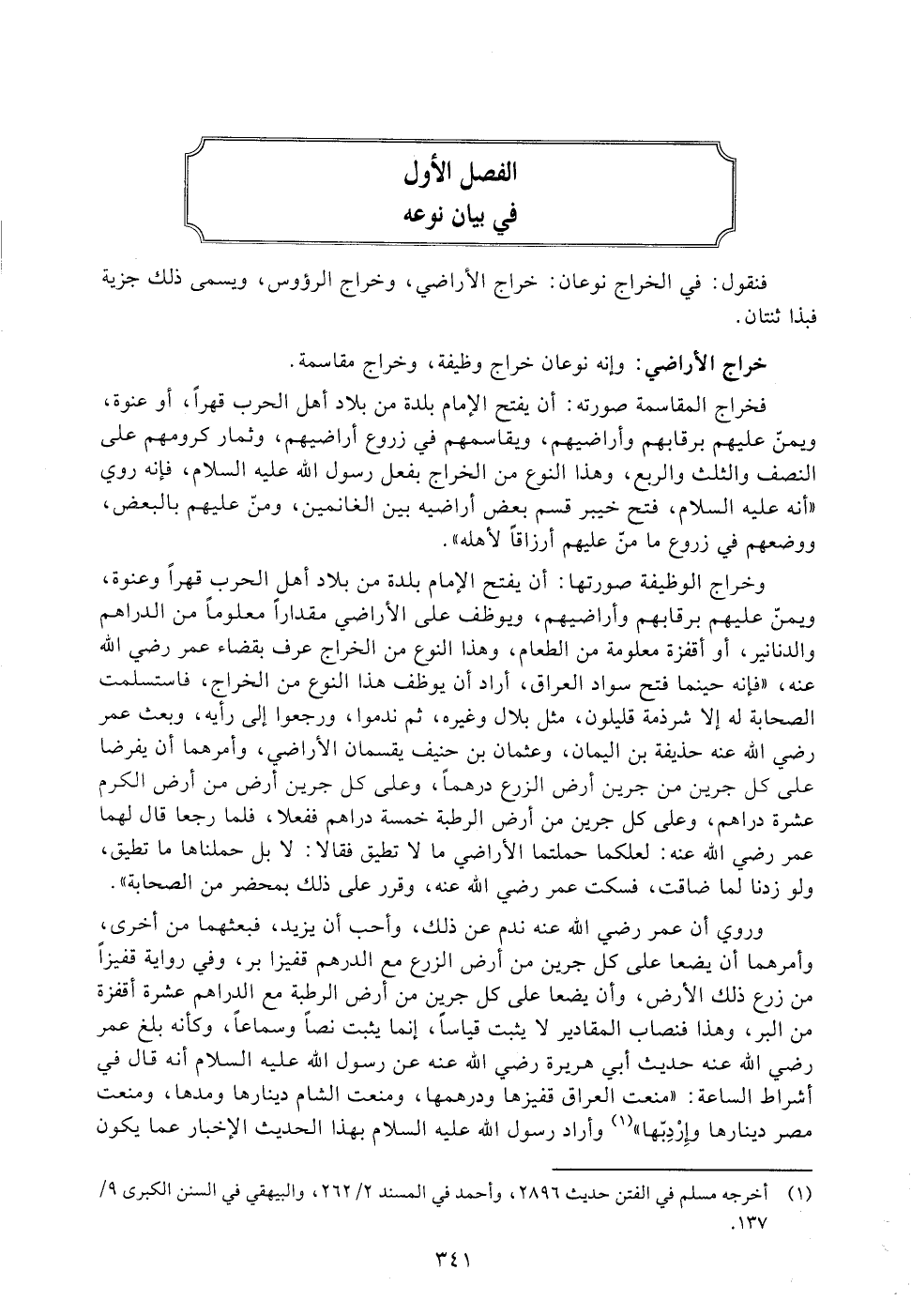 خراج الأراضي: وإنه نوعان خراج وظيفة، وخراج مقاسمة.