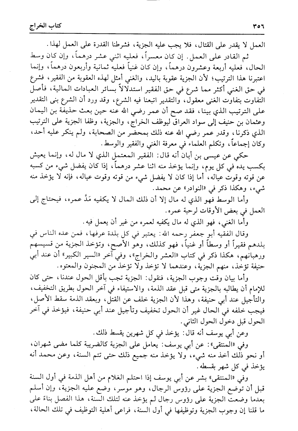 وقال الفقيه أبو جعفر رحمه الله: يعتبر في كل بلدة عرفها، فمن عده الناس في بلدهم فقيراً أو وسطاً أو غنياً، فهو كذلك، وهو الأصح، وتؤخذ الجزية من قسيسهم ورهبانهم، هكذا ذكر في كتاب «العشر والخراج» ، وفي آخر «السير الكبير» أن عند أبي حنيفة تؤخذ، منهم الجزية، وعندهما لا تؤخذ ولا تؤخذ من المجنون والمعتوه.