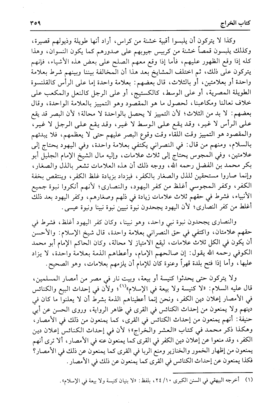 ولا يتركون حتى يحدثوا كنيسة أو بيعة، وبيت نار في مصر من أمصار المسلمين، قال عليه السلام: «لا كنيسة ولا بيعة في الإسلام» ؛ ولأن في إحداث البيع والكنائس في الأمصار إعلان دين الكفر، ونحن إنما أعطيناهم الذمة بشرط أن لا يعلنوا ما كان في دينهم ولا يمنعون من إحداث الكنائس في القرى في ظاهر الرواية، وروى الحسن عن أبي حنيفة: أنهم يمنعون من إحداث الكنائس في القرى، كما يمنعون من ذلك في الأمصار، وهكذا ذكر محمد في كتاب «العشر والخراج» ؛ لأن في إحداث الكنائس إعلان دين الكفر، وقد منعوا عن إعلان دين الكفر في القرى كما يمنعون عنه في الأمصار، ألا ترى أنهم يمنعون من إظهار الخمور والخنازير ومنع الربا في القرى كما يمنعون عن ذلك في الأمصار؟ فكذا يمنعون عن إحداث الكنائس في القرى كما يمنعون عن ذلك في الأمصار.