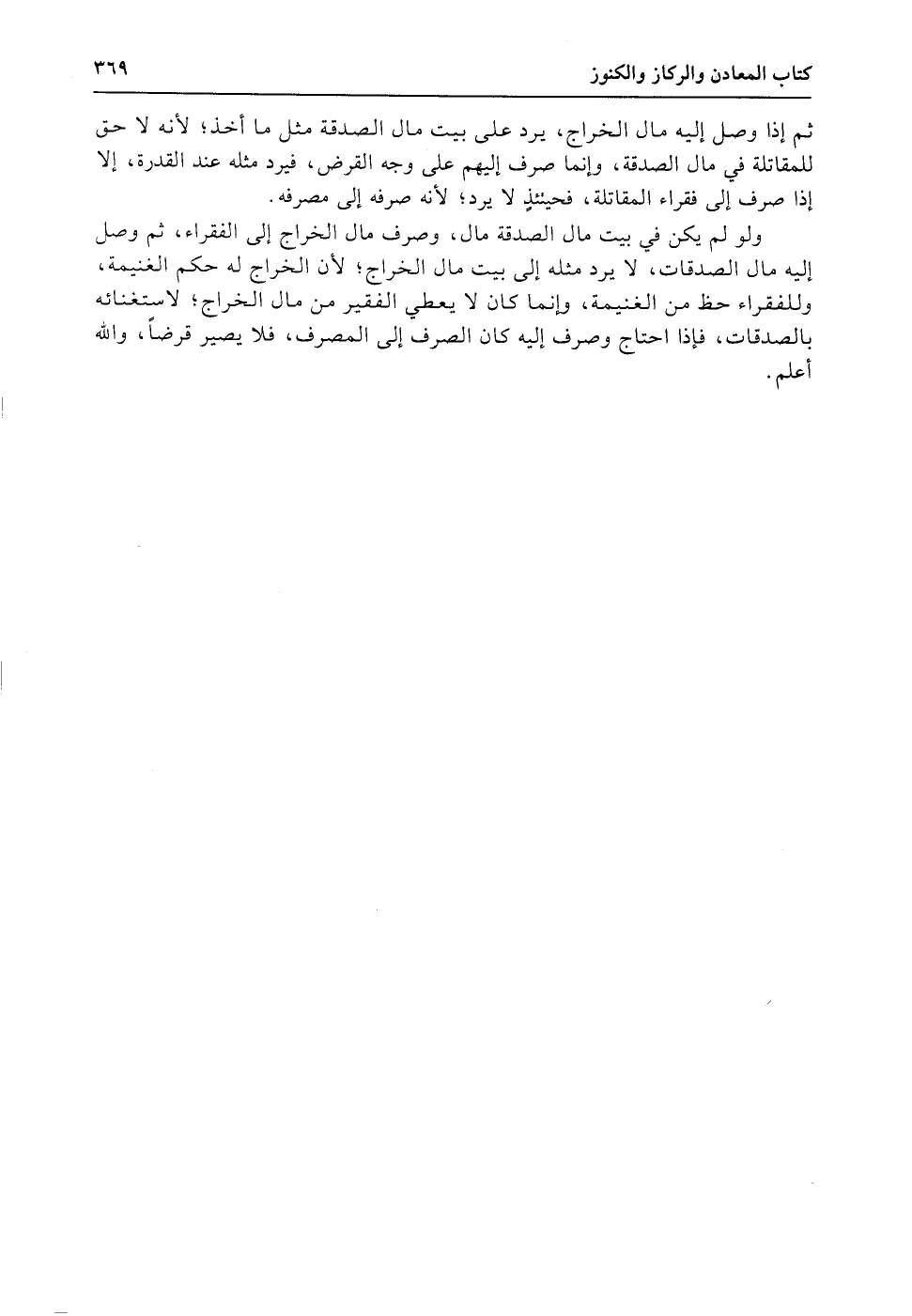 ثم إذا وصل إليه مال الخراج، يرد على بيت مال الصدقة مثل ما أخذ؛ لأنه لا حق للمقاتلة في مال الصدقة، وإنما صرف إليهم على وجه القرض، فيرد مثله عند القدرة، إلا إذا صرف إلى فقراء المقاتلة، فحينئذٍ لا يرد؛ لأنه صرفه إلى مصرفه.