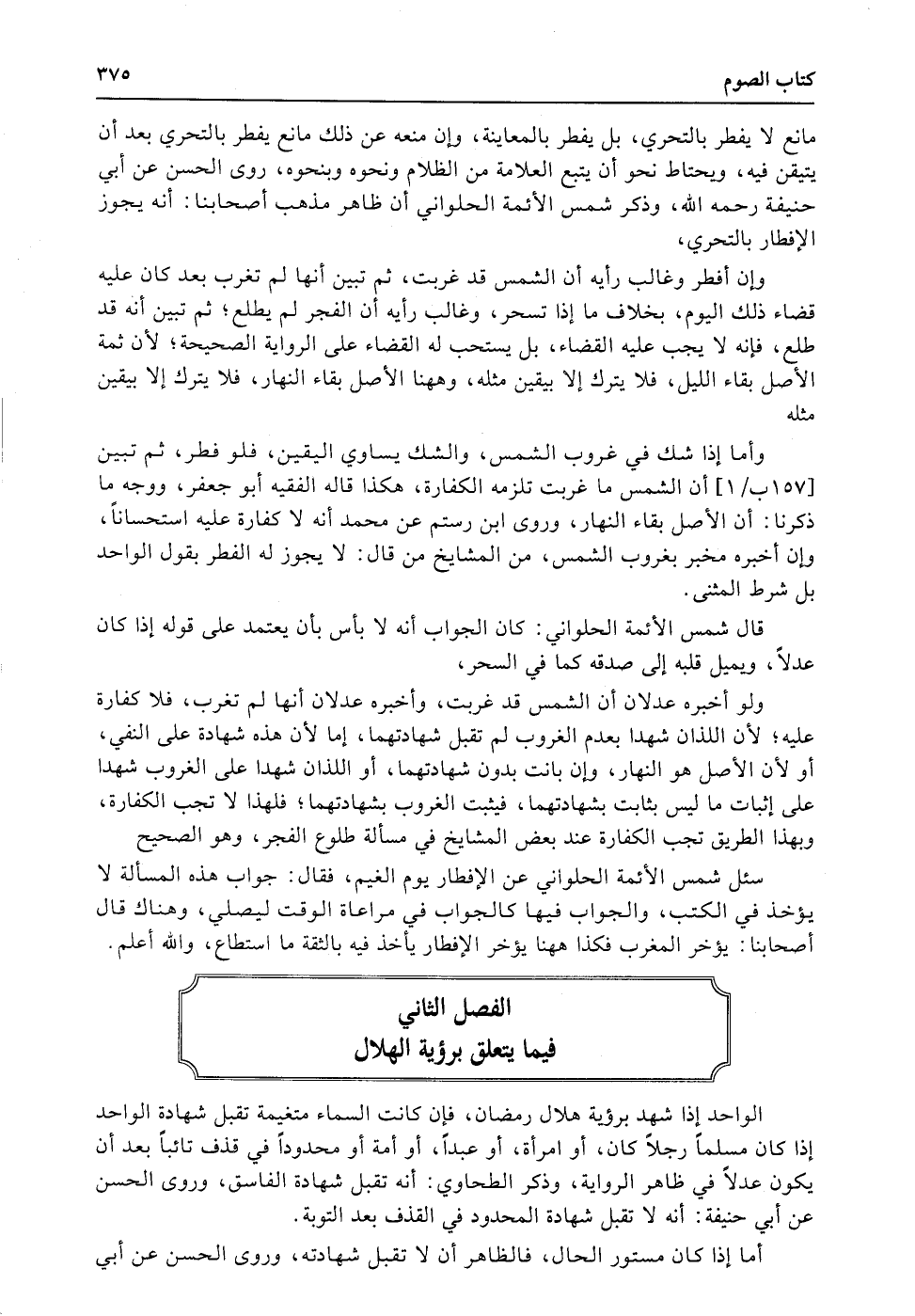 الفصل الثاني فيما يتعلق برؤية الهلال