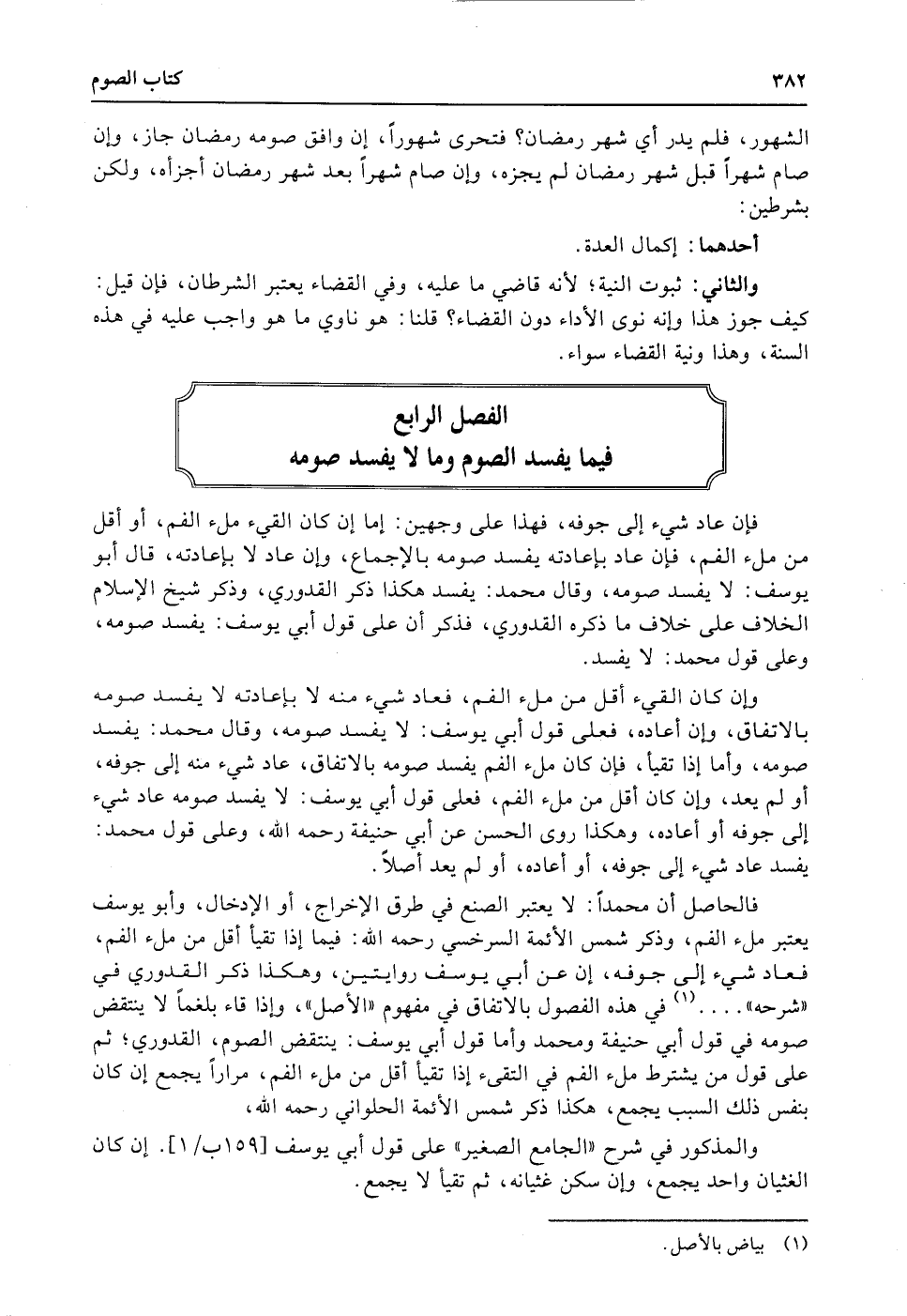 الفصل الرابع فيما يفسد الصوم وما لا يفسد صومه
