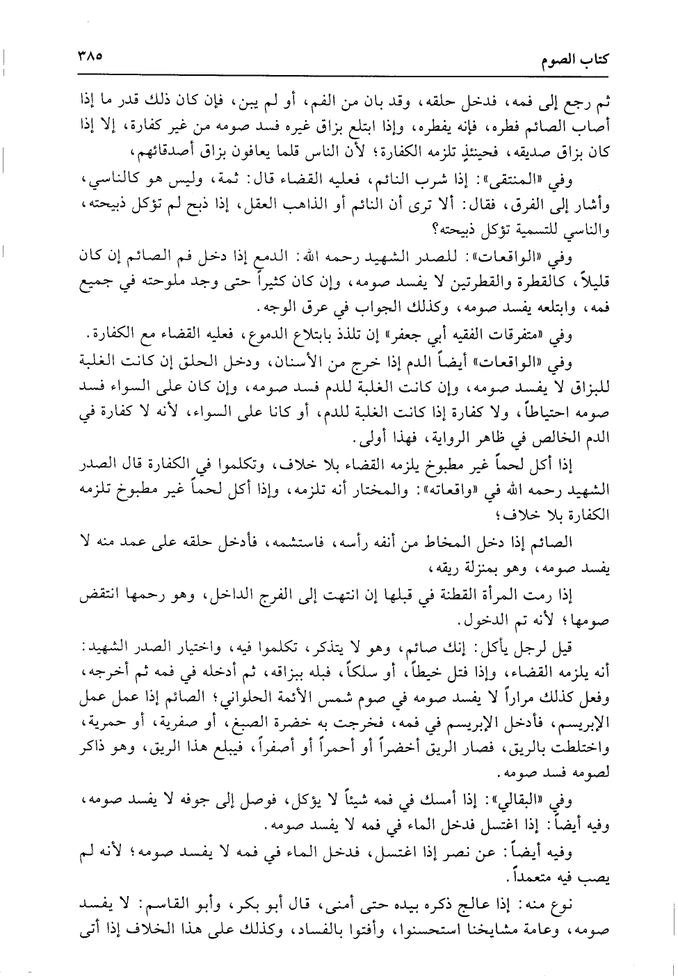 وفي «متفرقات الفقيه أبي جعفر» إن تلذذ بابتلاع الدموع، فعليه القضاء مع الكفارة.
