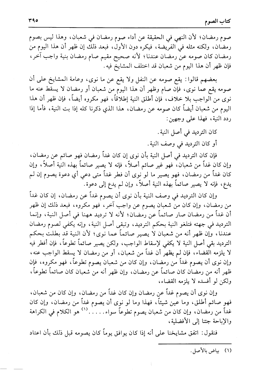 فإن كان الترديد في أصل النية بأن نوى إن كان غداً رمضان فهو صائم عن رمضان، وإن كان غداً من شعبان، فهو غير صائم أصلاً، فإنه لا يصير صائماً بهذه النية أصلاً، وإن كان غداً من رمضان، فهو يصير ما لو نوى أن فطر غداً متى دعي أي دعوة يصوم إن لم يدع، فإنه لا يصير صائماً بهذه النية أصلاً، وإن لم يدع إلى دعوة.