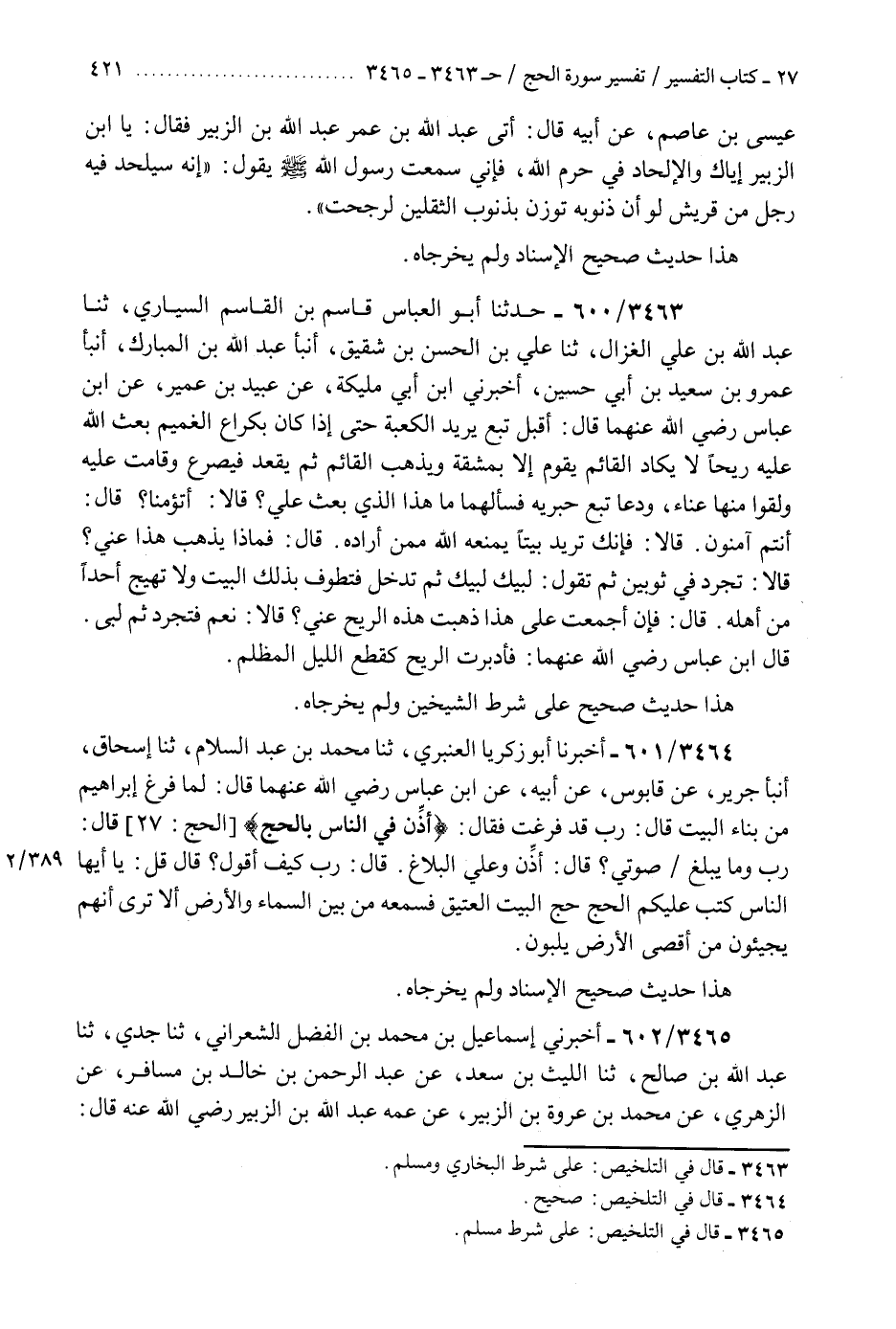 3464 - أَخْبَرَنَا أَبُو زَكَرِيَّا الْعَنْبَرِيُّ، ثنا مُحَمَّدُ بْنُ عَبْدِ السَّلَامِ، ثنا إِسْحَاقُ، أَنْبَأَ جَرِيرٌ، عَنْ قَابُوسَ، عَنْ أَبِيهِ، عَنِ ابْنِ عَبَّاسٍ رَضِيَ اللَّهُ عَنْهُمَا، قَالَ: §لَمَّا فَرَغَ إِبْرَاهِيمُ مِنْ بِنَاءِ الْبَيْتِ قَالَ: رَبِّ قَدْ فَرَغْتُ. فَقَالَ: «أَذِّنِ فِي النَّاسَ بِالْحَجِّ» . قَالَ: رَبِّ وَمَا يَبْلُغُ صَوْتِي؟ قَالَ: «أَذِّنْ وَعَلَيَّ الْبَلَاغُ» . قَالَ: رَبِّ كَيْفَ أَقُولُ؟ قَالَ: " قُلْ: يَا أَيُّهَا النَّاسُ، كُتِبَ عَلَيْكُمُ الْحَجُّ، حَجُّ الْبَيْتِ الْعَتِيقِ فَسَمِعَهُ مَنْ بَيْنَ السَّمَاءِ وَالْأَرْضِ أَلَا تَرَى أَنَّهُمْ يَجِيئُونَ مِنْ أَقْصَى الْأَرْضِ يُلَبُّونَ؟ «هَذَا حَدِيثٌ صَحِيحُ الْإِسْنَادِ وَلَمْ يُخْرِجَاهُ» K3464 - صحيح
