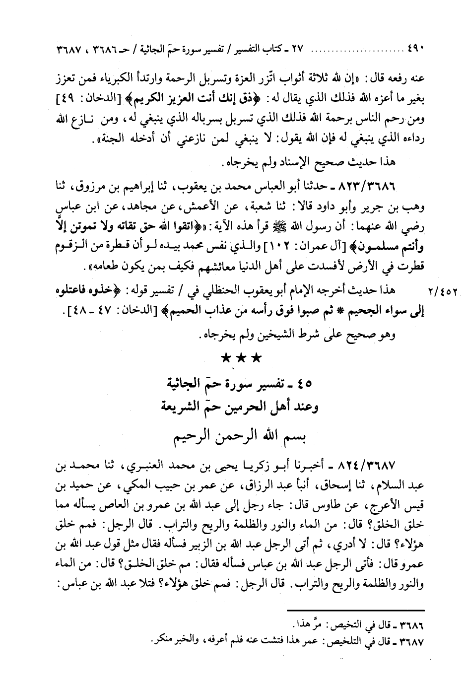 §تَفْسِيرُ سُورَةِ حم الْجَاثِيَةِ وَعِنْدَ أَهْلِ الْحَرَمَيْنِ حم الشَّرِيعَةِ. بِسْمِ اللَّهِ الرَّحْمَنِ الرَّحِيمِ