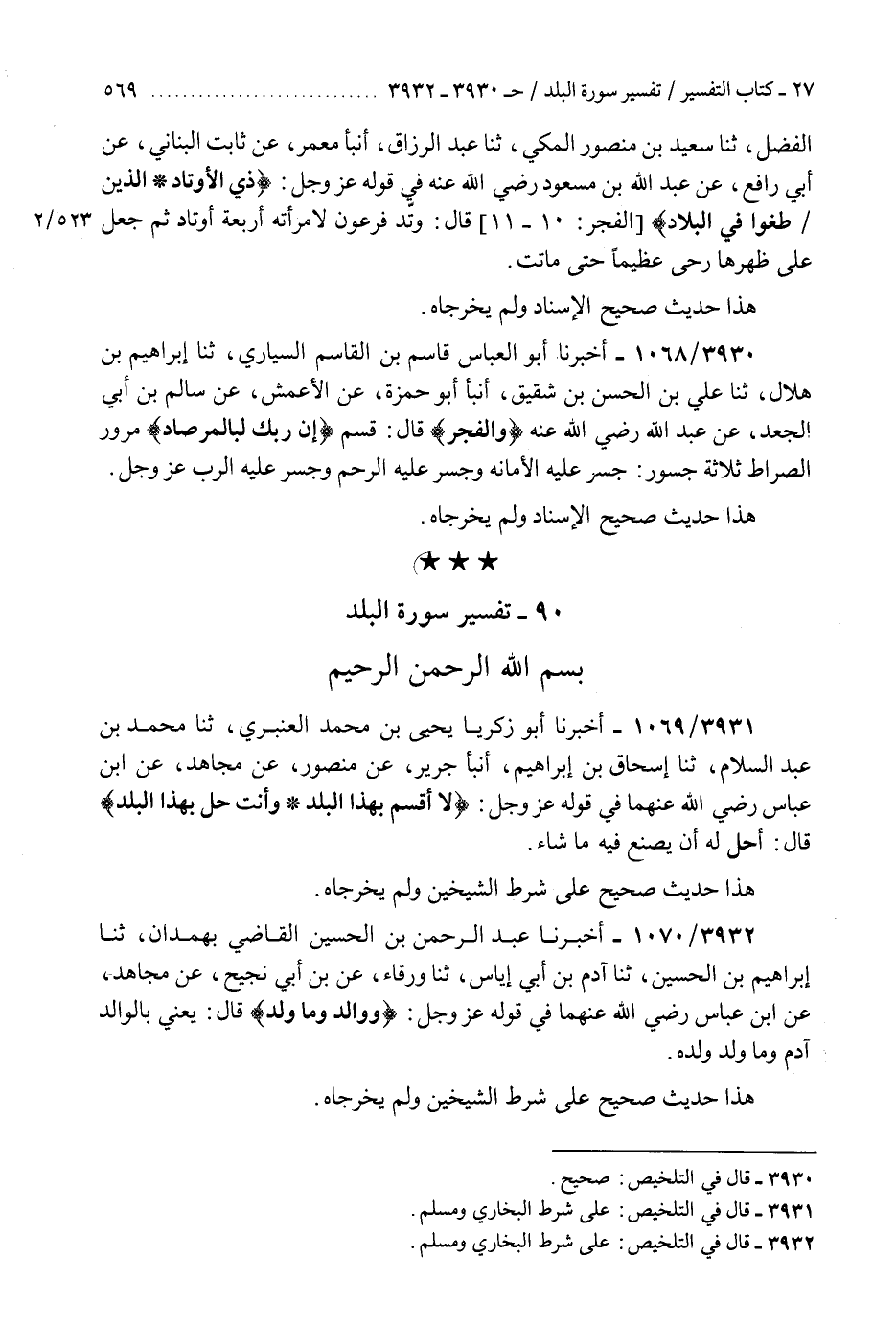 3931 - أَخْبَرَنَا أَبُو زَكَرِيَّا يَحْيَى بْنُ مُحَمَّدٍ الْعَنْبَرِيُّ، ثنا مُحَمَّدُ بْنُ عَبْدِ السَّلَامِ، ثنا إِسْحَاقُ بْنُ إِبْرَاهِيمَ، أَنْبَأَ جَرِيرٌ، عَنْ مَنْصُورٍ، عَنْ مُجَاهِدٍ، عَنِ ابْنِ عَبَّاسٍ رَضِيَ اللَّهُ عَنْهُمَا، فِي قَوْلِهِ عَزَّ وَجَلَّ: {§لَا أُقْسِمُ بِهَذَا الْبَلَدِ وَأَنْتَ حِلٌّ بِهَذَا الْبَلَدِ} [البلد: 2] قَالَ: «أَحَلَّ لَهُ أَنْ يَصْنَعَ فِيهِ مَا شَاءَ» هَذَا حَدِيثٌ صَحِيحٌ عَلَى شَرْطِ الشَّيْخَيْنِ وَلَمْ يُخَرِّجَاهُ "K3931 - على شرط البخاري ومسلم