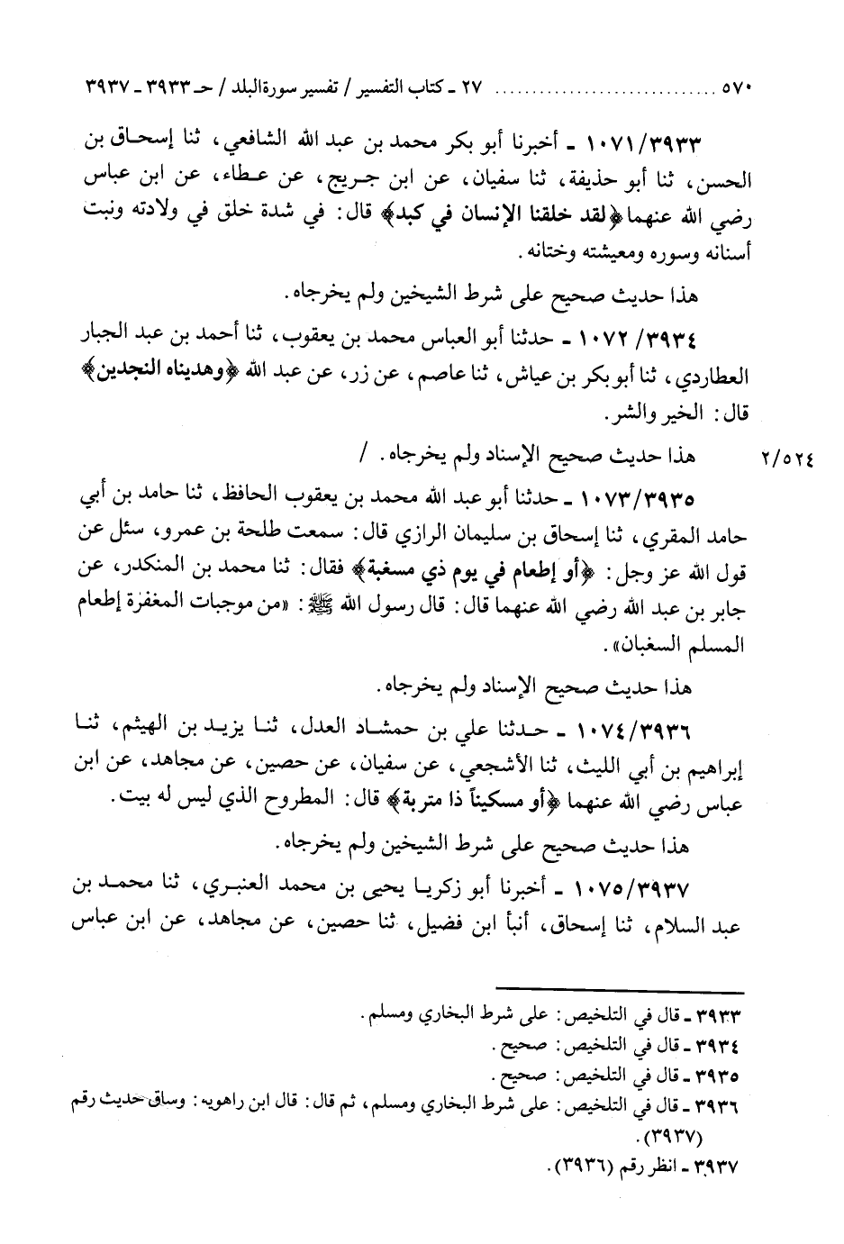 3933 - أَخْبَرَنَا أَبُو بَكْرٍ مُحَمَّدُ بْنُ عَبْدِ اللَّهِ الشَّافِعِيُّ، ثنا إِسْحَاقُ بْنُ الْحَسَنِ، ثنا أَبُو حُذَيْفَةَ، ثنا سُفْيَانُ، عَنِ ابْنِ جُرَيْجٍ، عَنْ عَطَاءٍ، عَنِ ابْنِ عَبَّاسٍ رَضِيَ اللَّهُ عَنْهُمَا، {§لَقَدْ خَلَقْنَا الْإِنْسَانَ فِي كَبَدٍ} [البلد: 4] قَالَ: «فِي شِدَّةِ خَلْقٍ فِي وِلَادَتِهِ وَنَبْتِ أَسْنَانِهِ وَسُوَرِهِ وَمَعِيشَتِهِ وَخِتَانِهِ» هَذَا حَدِيثٌ صَحِيحٌ عَلَى شَرْطِ الشَّيْخَيْنِ وَلَمْ يُخَرِّجَاهُ "K3933 - على شرط البخاري ومسلم