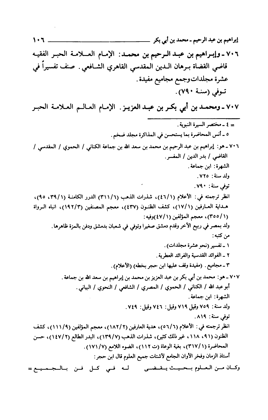 وإبراهيم بن عبد الرحيم بن محمد: الإمام العلامة الحبر الفقيه قاضي القضاة برهان الدين المقدسي القاهري الشافعي. صنف تفسيراً في عشرة مجلدات وجمع مجاميع مفيدة.