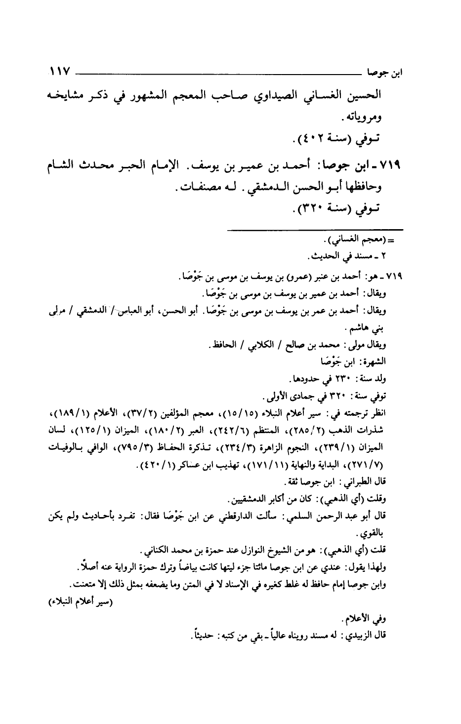ابن جوصا: أحمد بن عمير بن يوسف. الإمام الحبر محدث الشام وحافظها أبو الحسن الدمشقي. له مصنفات.